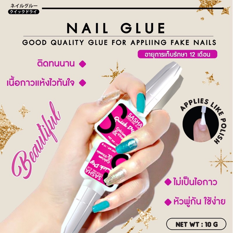 Sasha ซาช่า กาวติดเล็บปลอม หัวพู่กัน 10g