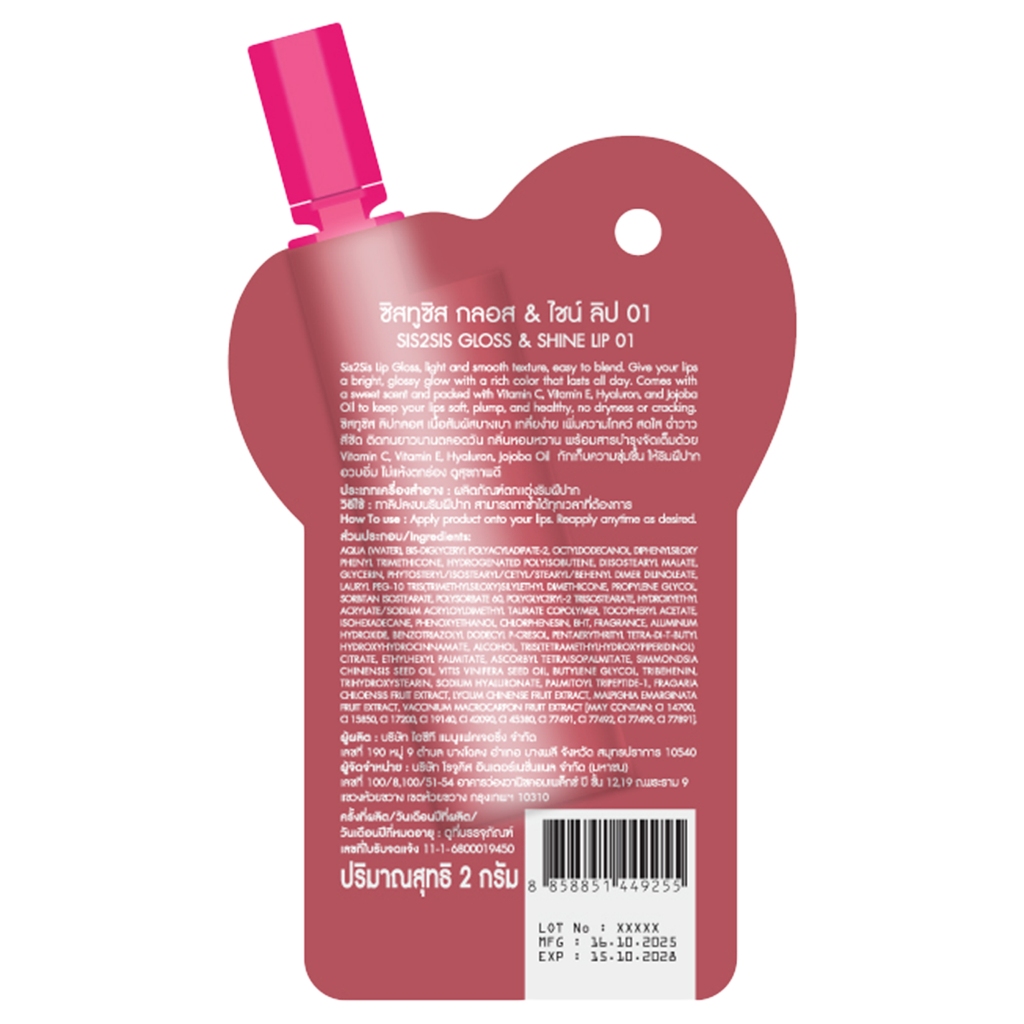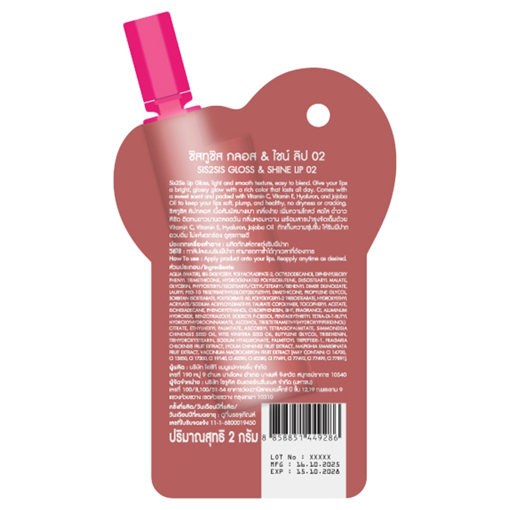 SIS2SIS - Gloss & Shine Lip (2g) ซิสทูซิส กลอส & ไชน์ ลิป