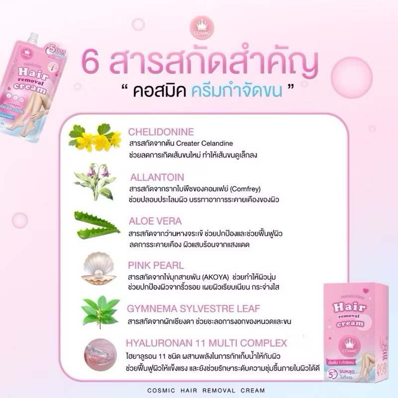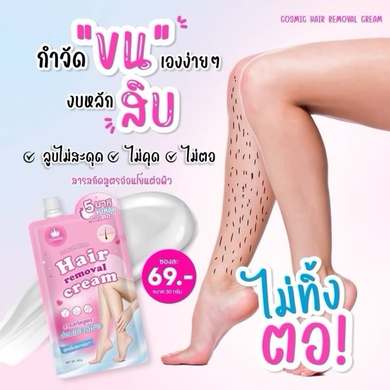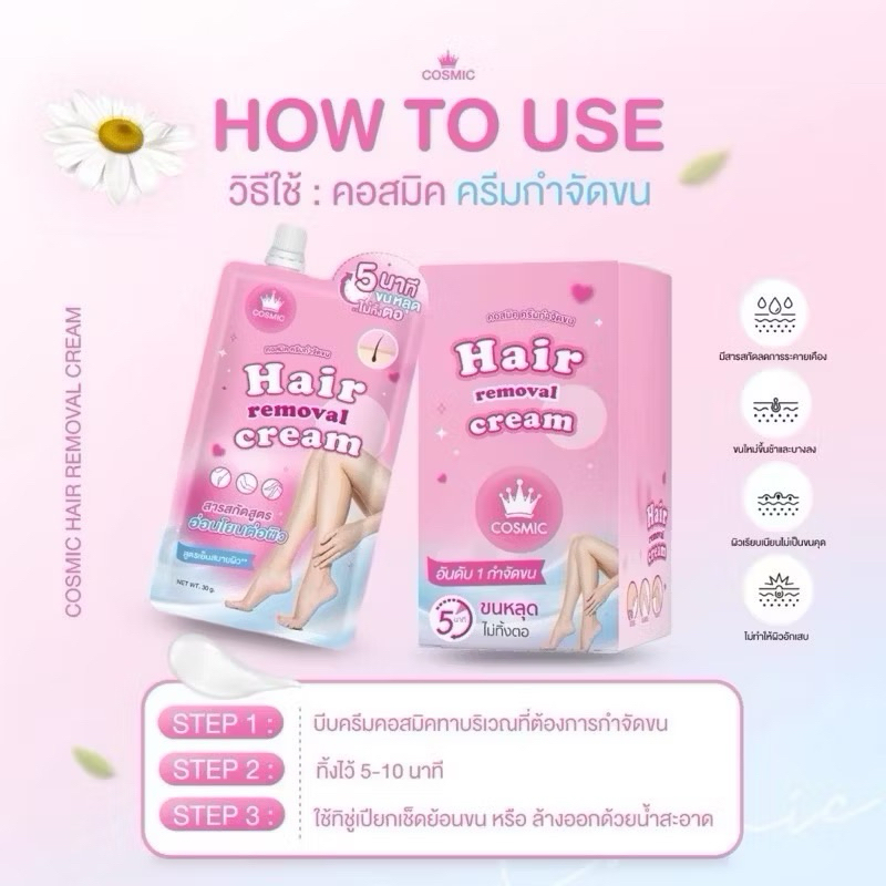 (1ซอง) ครีมกำจัดขนแบบซอง คอสมิค Cosmic Hair Removal Cream ขนาด 30กรัม