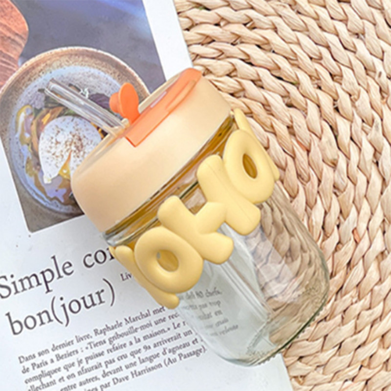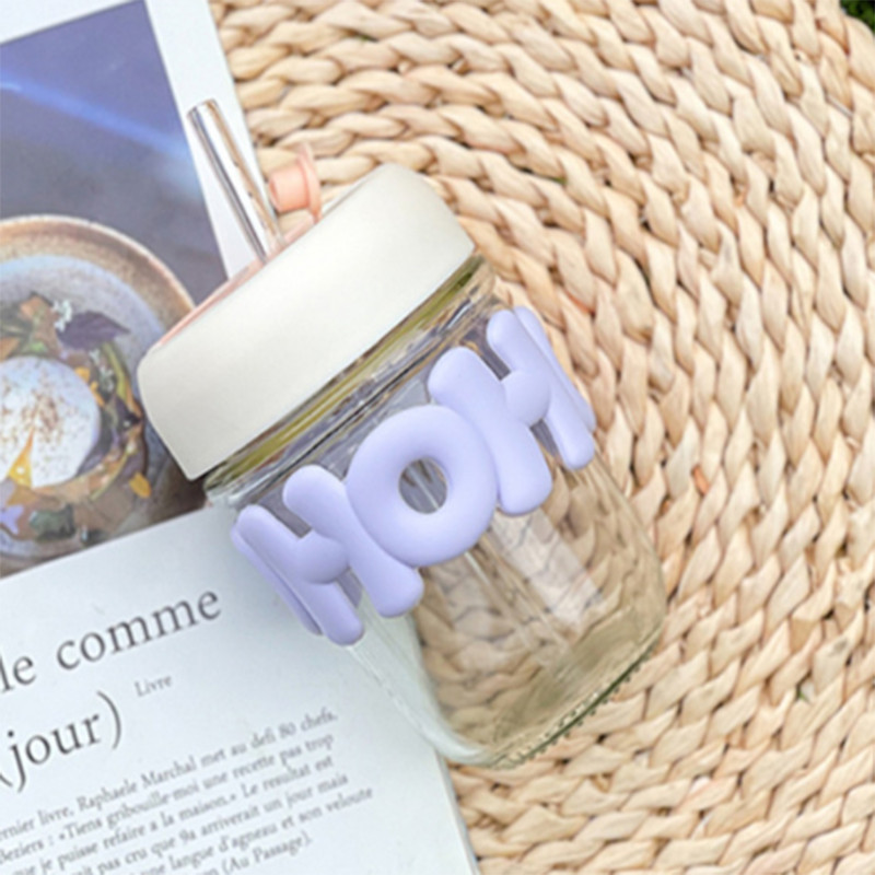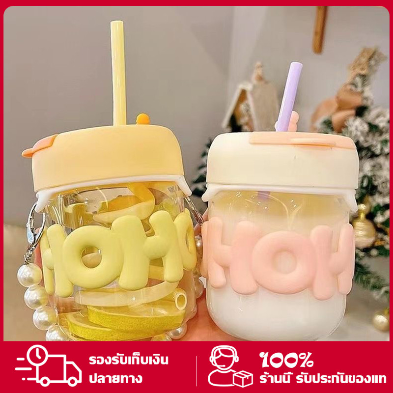 ถ้วยแฟชั่น ถ้วยแก้ว แก้วใส่น้ำ 350ml สไตล์มินิมอล พร้อมหลอดแก้ว ฝาปิด สไตล์ทันสมัย เหมาะกับการให้เป็นของขวัญ