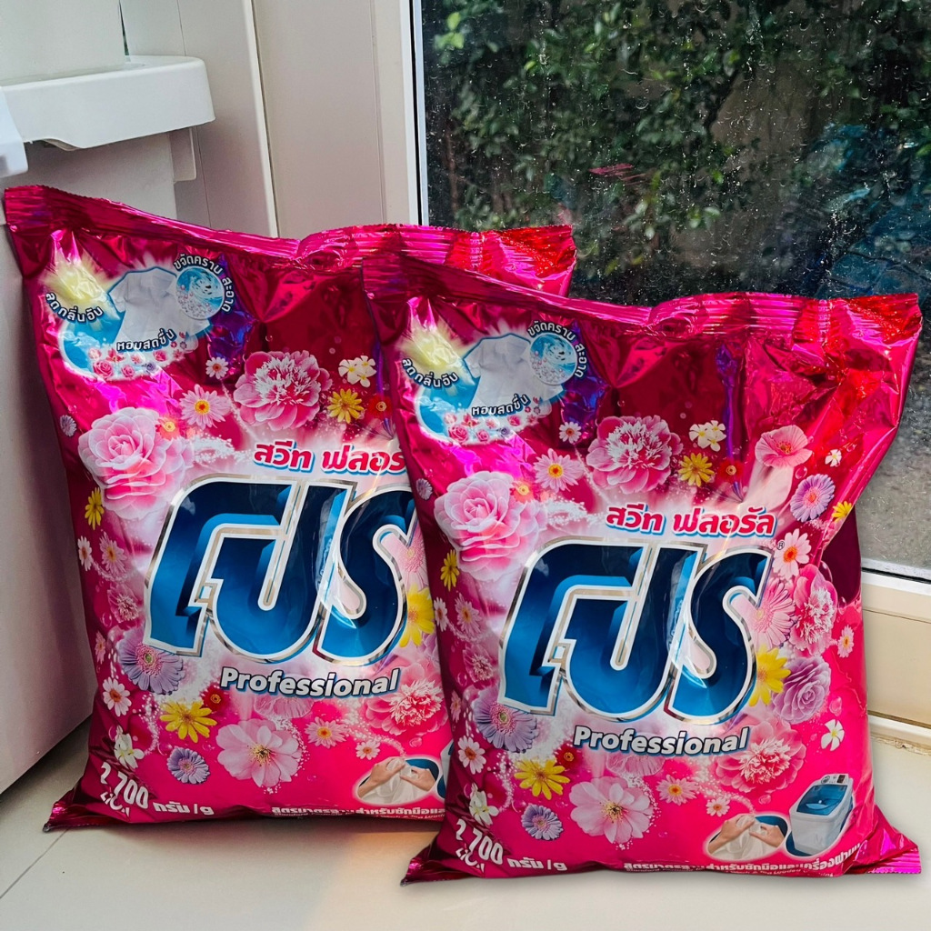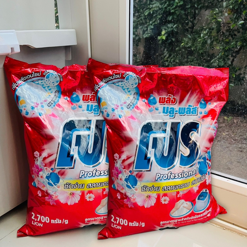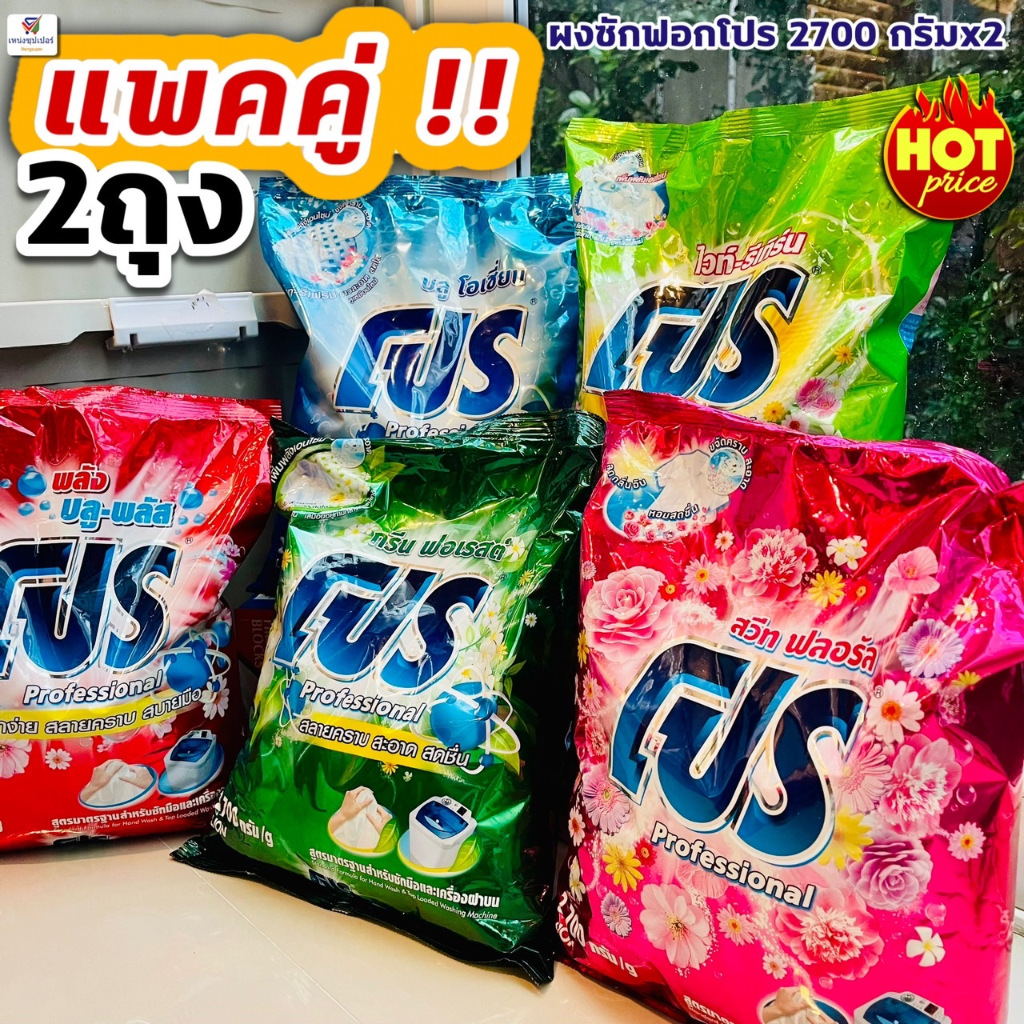 (แพคคู่!!ถุงใหญ่สุดคุ้ม) ผงซักฟอกโปร สะอาดสดชื่น ลดกลิ่นอับ 2700 กรัม x 2 ถุง Clean ทำความสะอาด