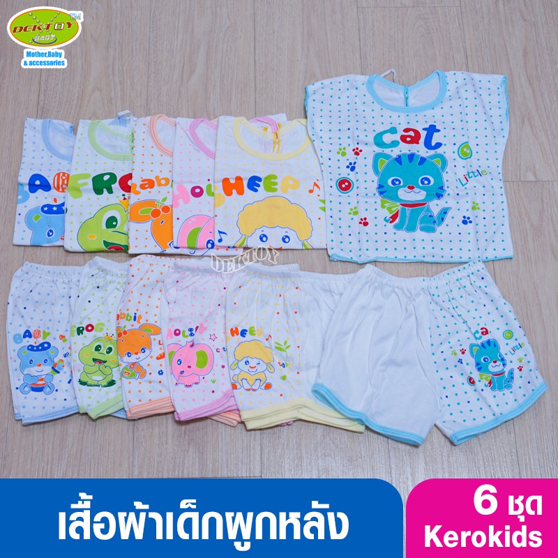 Kerokids เสื้อผ้าเด็กแรกเกิด ชุดเด็กแรกเกิดผูกหลังสั้นแพ็ค 6 ชุด ลายน้อย