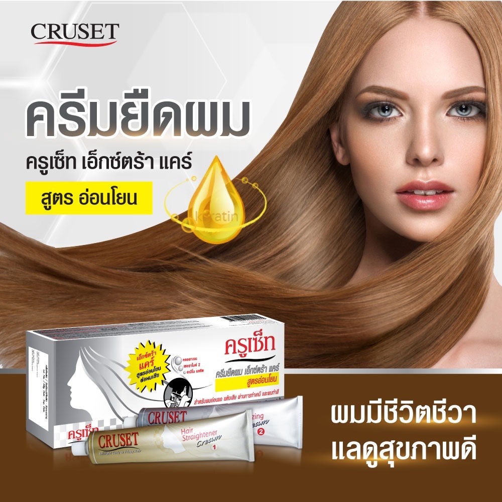 CRUSET ครูเซ็ท ครีมยืดผม (สูตรเอ๊กตร้าแคร์) 60/170 มล. ผมตรง เรียงเส้น ยาวงาม