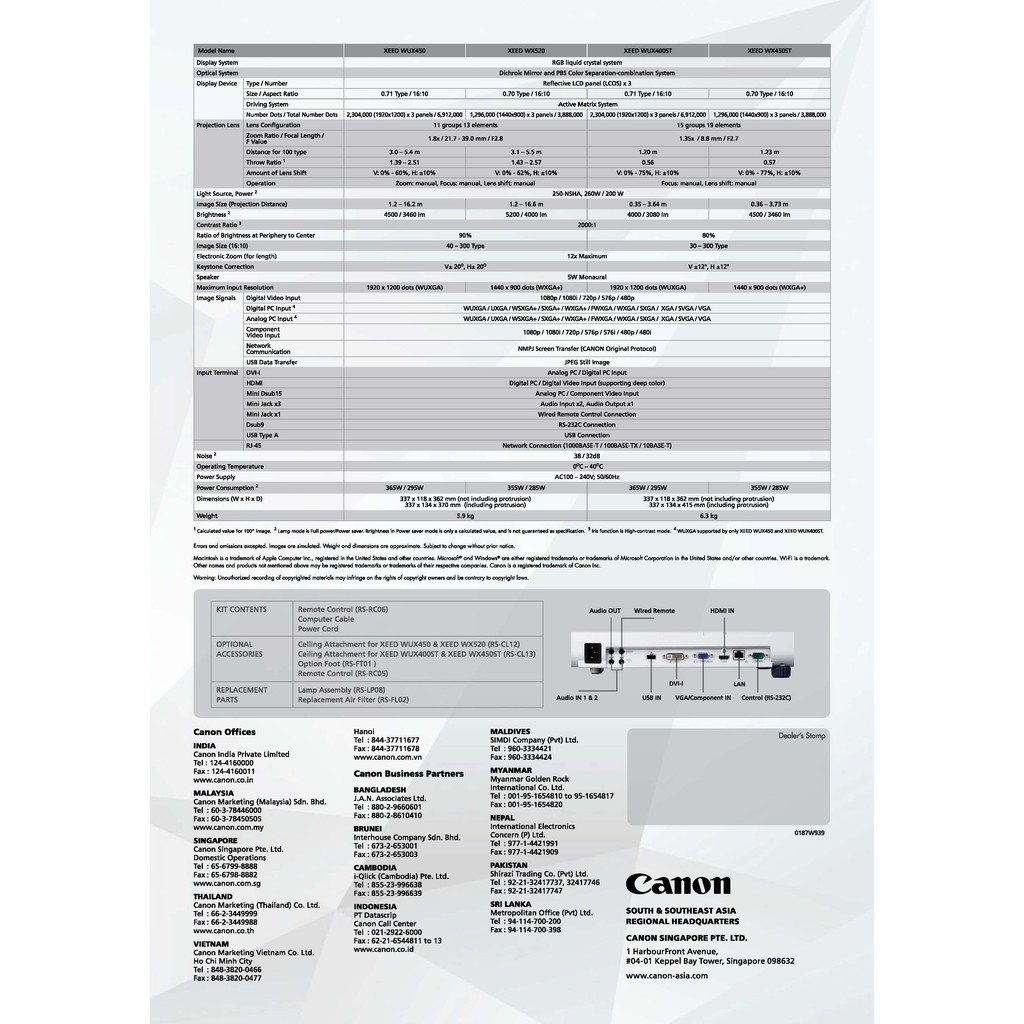 CANON Projector รุ่น XEED LV-WX520 (LCoS / 5200 LM / WXGA+) ประกันศูนย์ Canon 1 ปี
