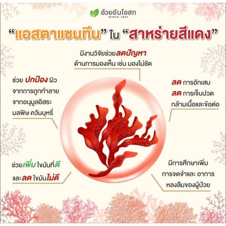 อ้วยอัน Astacumin แอสต้าคิวมิน 30แคปซูล สารสกัดสาหร่ายสีแดง ขมิ้นชัน Asta cumin #9434