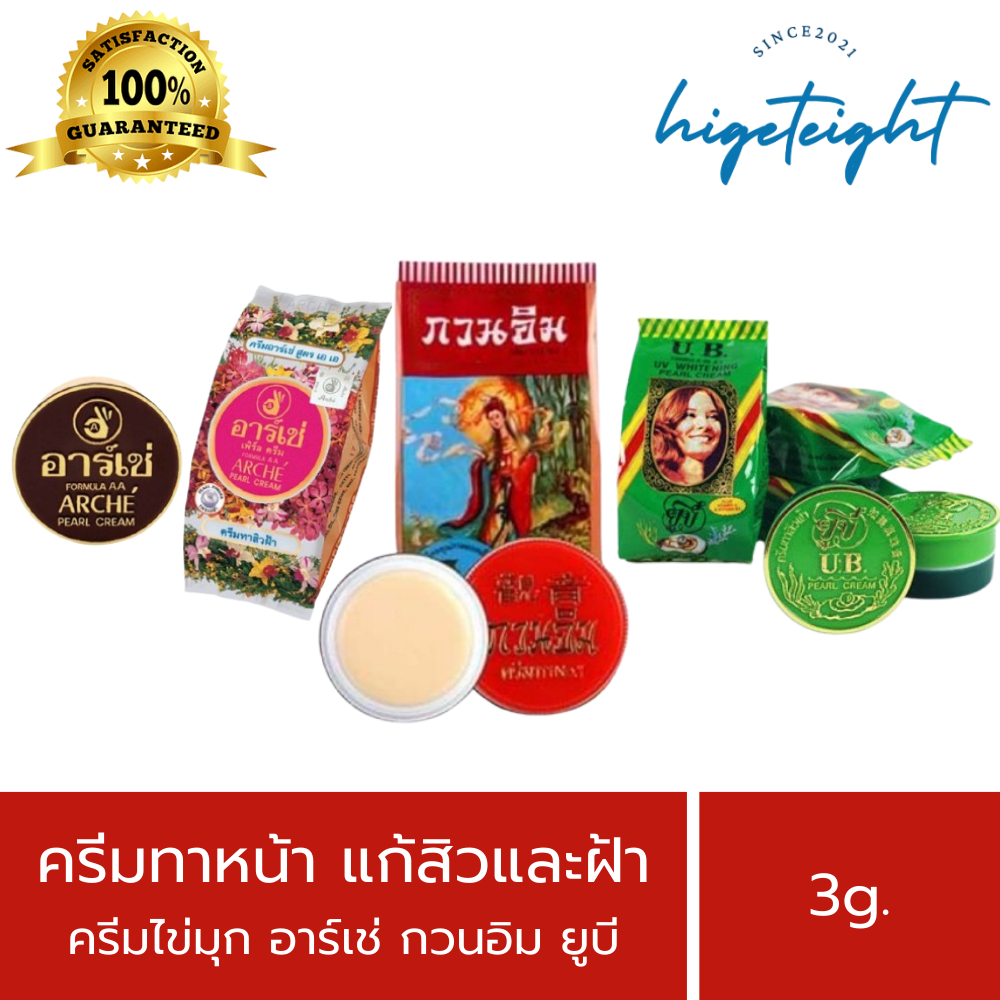 ครีมทาหน้า แก้สิวและฝ้า รองพื้น ครีมไข่มุก อาร์เช่ กวนอิม ยูบี Arche Kuan im UB ขนาด 3g.