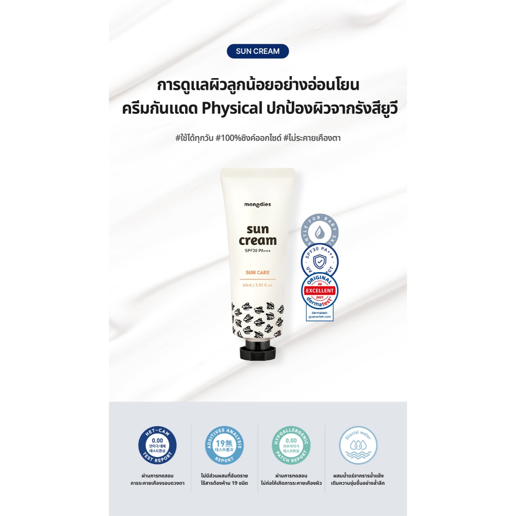 🇰🇷 พร้อมส่งในไทย🇹🇭 Mongdies (มองดิเอส) Sun Cream 60g. ครีมกันแดดสำหรับเด็ก ผิวบอบบางแพ้ง่าย