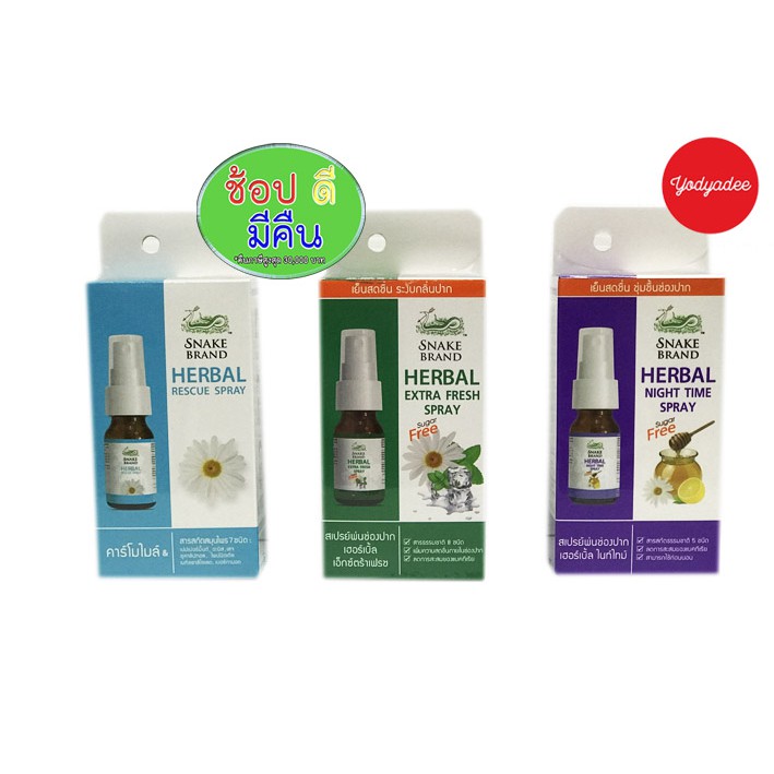 Snake Brand Herbal Rescue Spray สเปรย์พ่นช่องปาก ตรางู 15ml Chamomile/Extra fresh/Night time