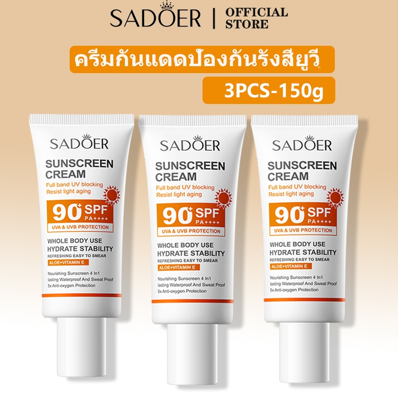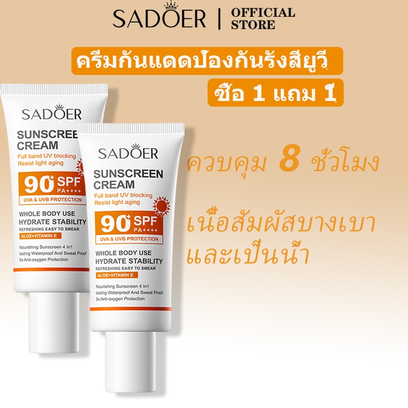 SADOER ครีมกันแดดสําหรับผิวหน้า ครีมกันแดดสําหรับผิวหน้า ปกป้องผิวจากแสงแดดและมลภาวะ SPF 90+PA+++