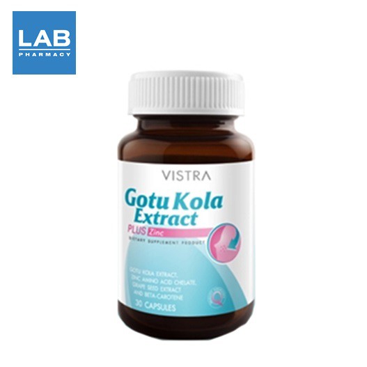 Vistra Gotu Kola Extract Plus Zinc (30เม็ด) - วิสทร้า ผลิตภัณฑ์เสริมอาหารสำหรับผู้มีปัญหาสิว