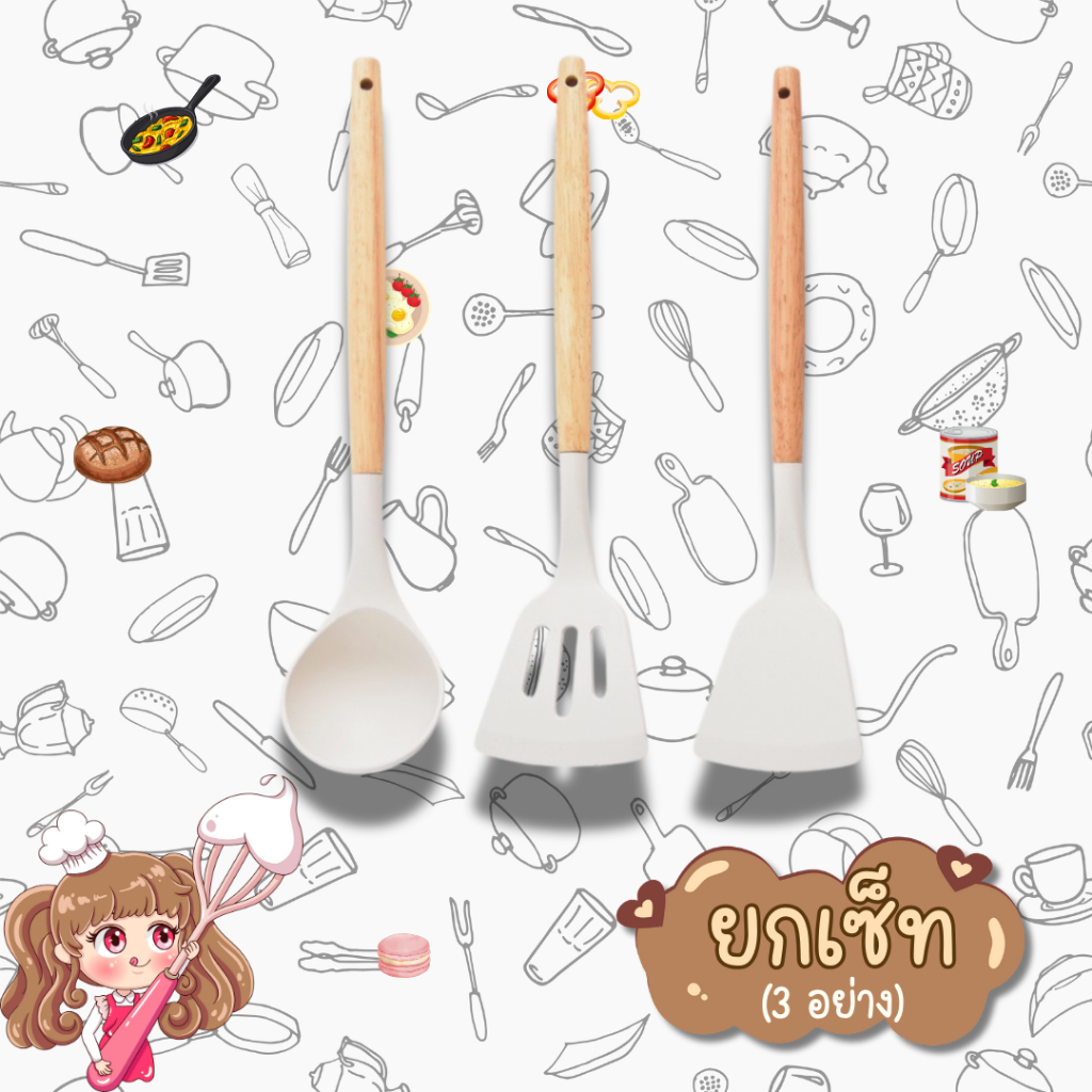 ชุดเครื่องครัว ตะหลิวซิลิโคน ทัพพี กระบวย เครื่องครัวสำหรับทำอาหาร