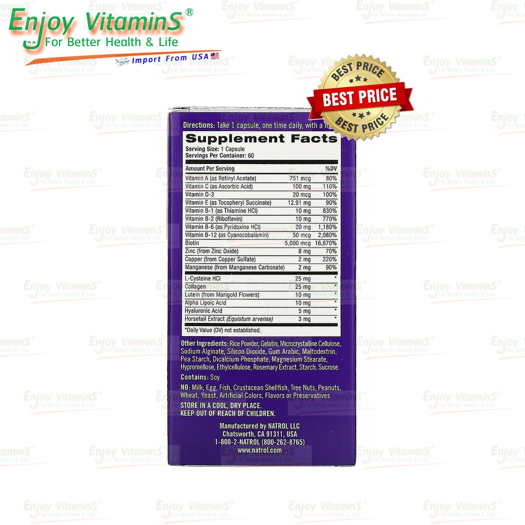 Natrol Skin, Hair & Nails 1 per day 60 Capsules (Exp.11/2022)