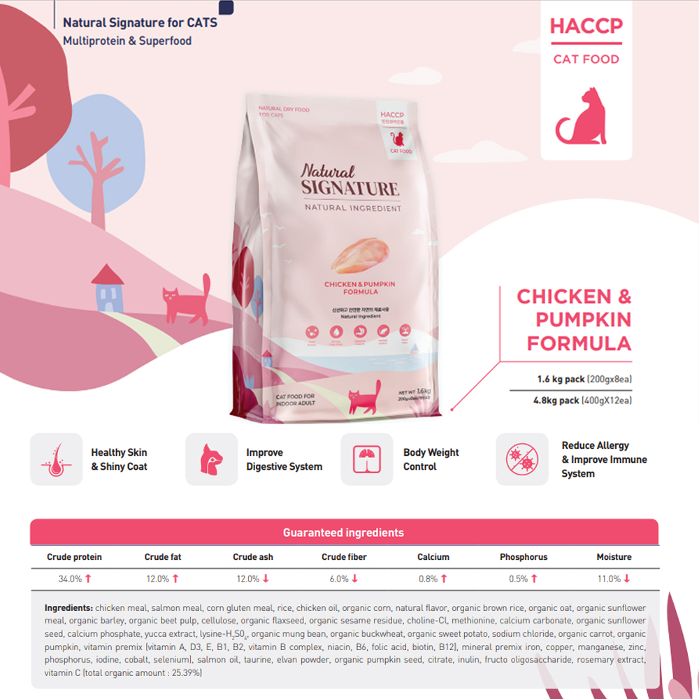 Natural Signature for Cat Chicken เนเชอรัล ซิกเนเจอร์ อาหารแมว ออร์แกนิค สูตรไก่ จากเกาหลี 4.8 Kg.
