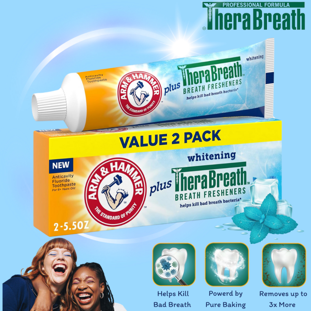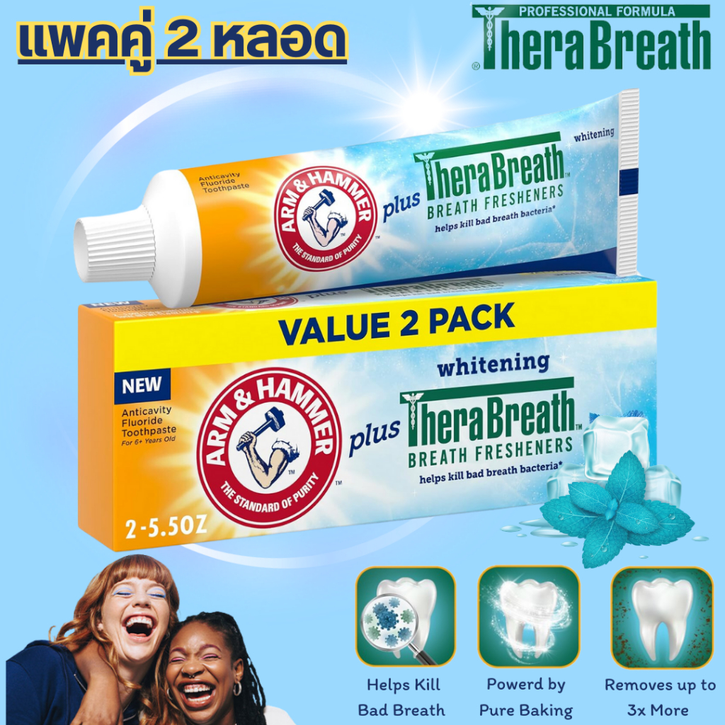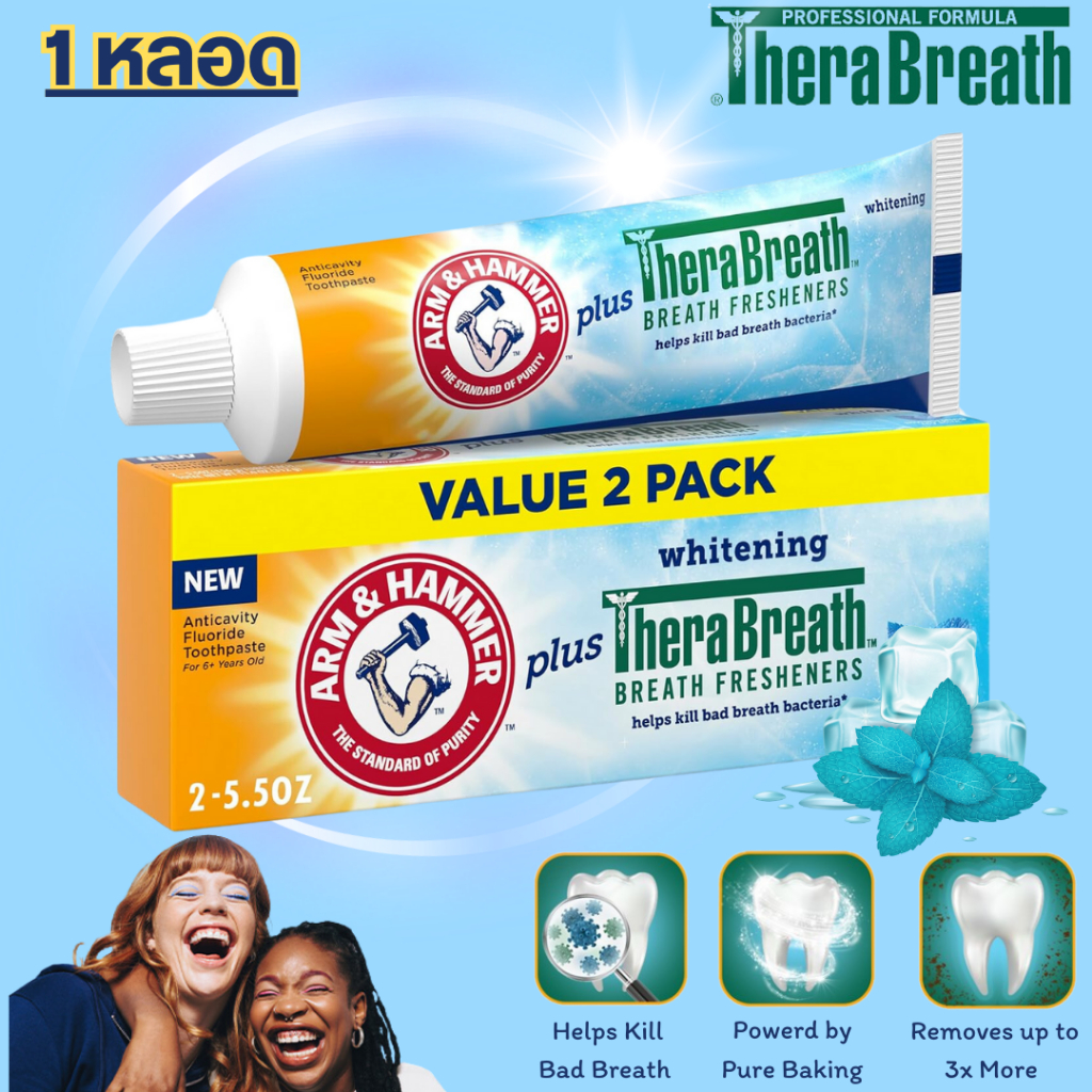 นำเข้า 🇺🇸 “ฟันขาวมั่นใจ ลมหายใจสดชื่น กับคู่หู ARM & HAMMER และ TheraBreathพร้อมดูแลครบสูตรในหลอดเดียว ราคา 360 บาท
