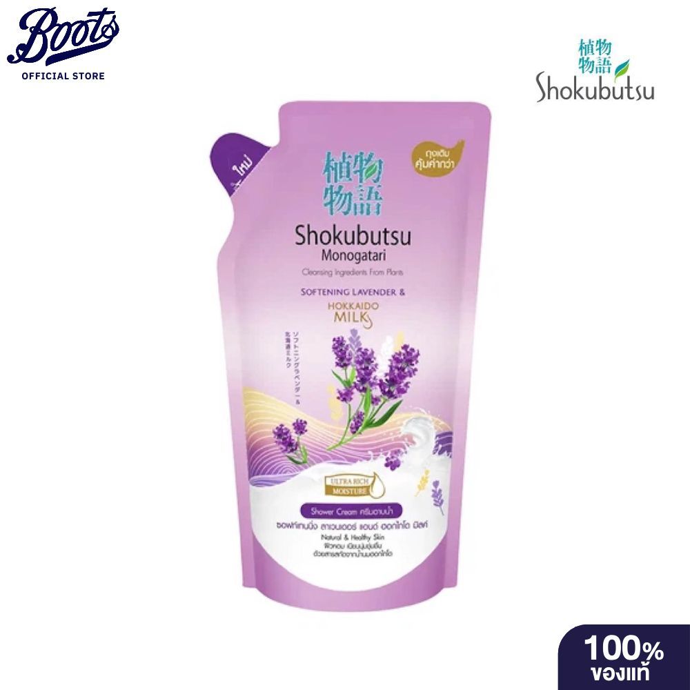 Shokubutsu โชกุบุสซึครีมอาบน้ำสูตรซอฟเทนนิ่งลาเวนเดอร์แอนด์ฮอกไกโดมิลค์ 500มล. รีฟิล