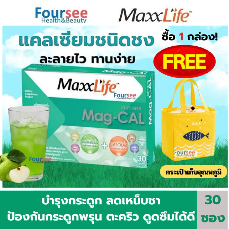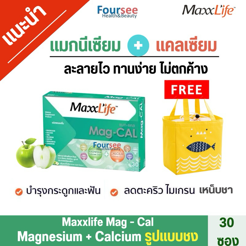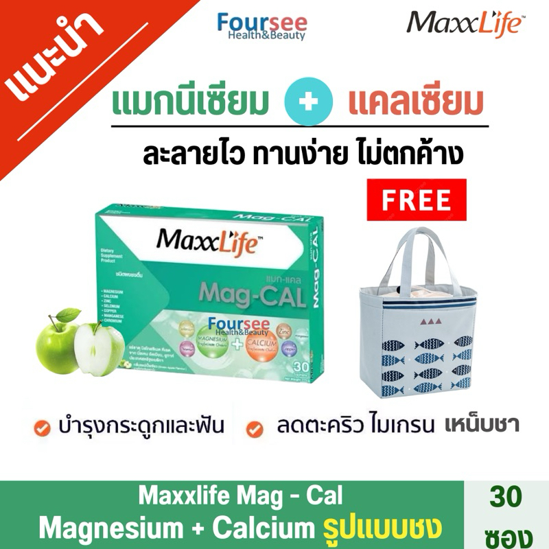 ล้อตใหม่ ((รับฟรีกระเป๋าเก็บอุณหภูมิ))📌🍏Maxxlife Mag-Cal แมกนีเซียม +แคลเซียม ป้องกันกระดูกพรุน(30 ซอง)