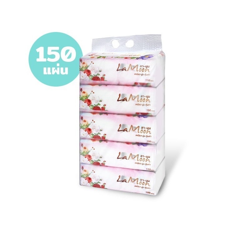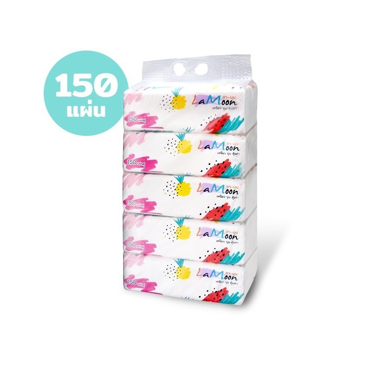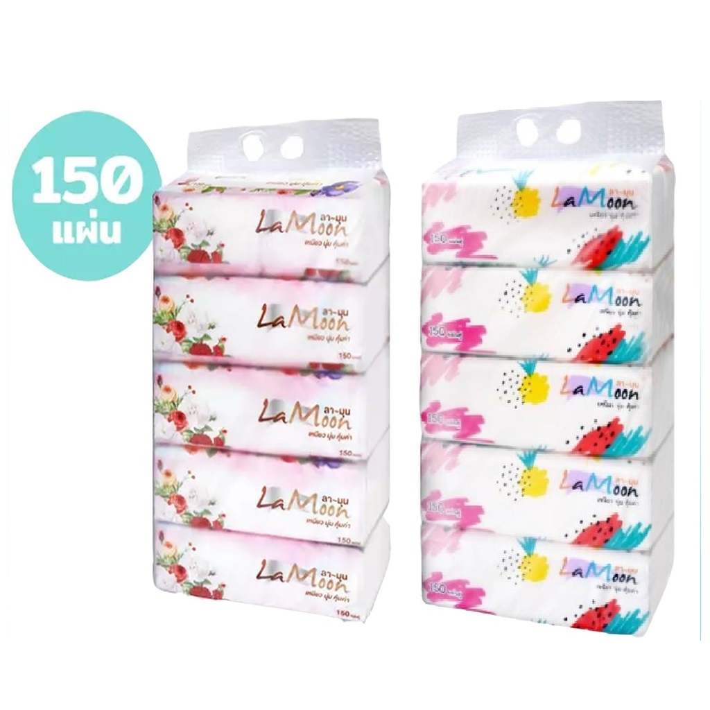 LaMoon ลามุน กระดาษเช็ดหน้า ลายดอกไม้และผลไม้ รุ่น 150 แผ่นคู่ ( 5 ห่อ )