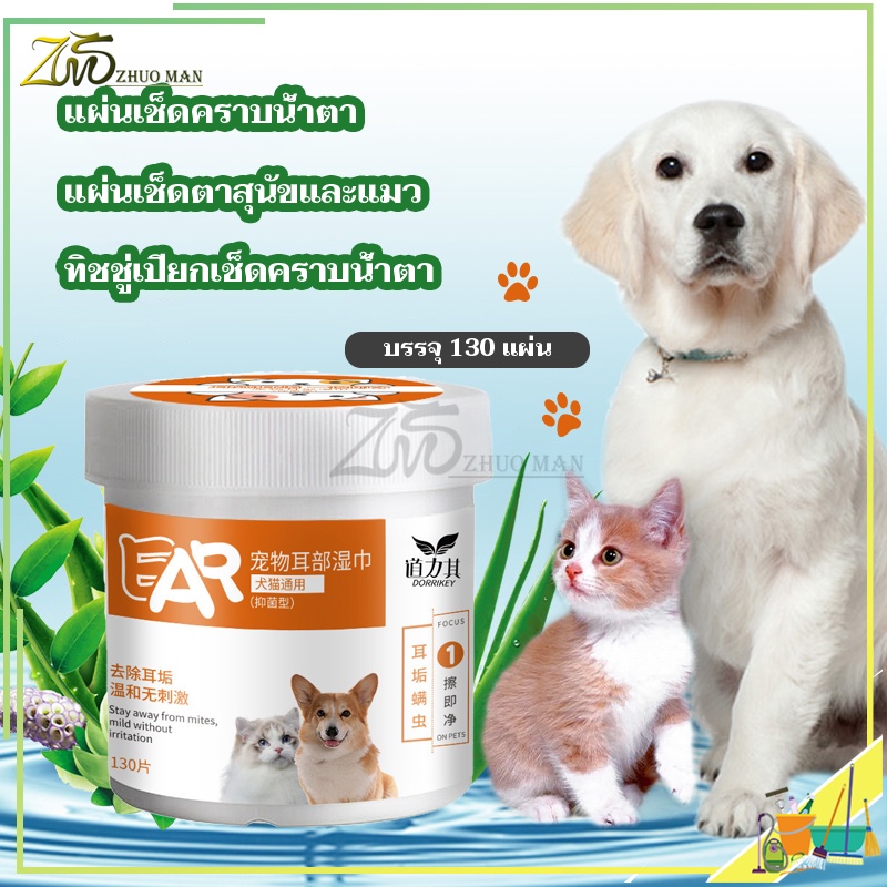 แผ่นเช็ดคราบน้ำตาสุนัขและแมว แผ่นเช็ดตาแมว แผ่นเช็ดตาสุนัข ห่อละ 130 ชิ้น น้ํายาเช็ดหูสุนัข เช็ดหูแมว เช็ดตาแมว ปลอดภัย