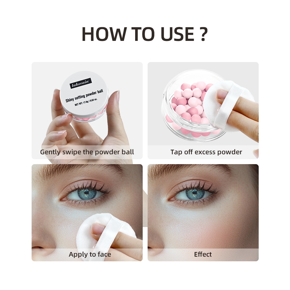 Lakerain Shiny Setting Powder Ball Baked Powder Ball Powder Shimmer Multi สี Blusher ติดทนนาน Matte Oil Control Smooth Face แต่งหน้า Pressed Powder สําหรับการตั้งค่าแป้ง Pu