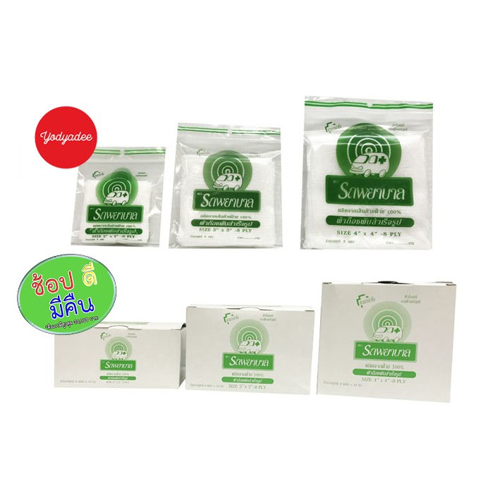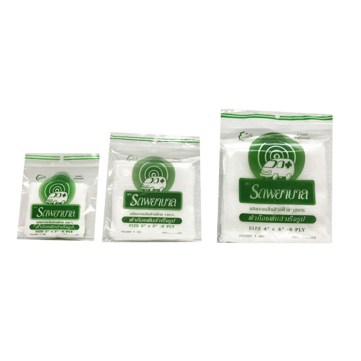 ผ้าก๊อซพับสำเร็จรูป ตรารถพยาบาล ขนาด 2"x2" 3"x3" 4"x4" 8ply