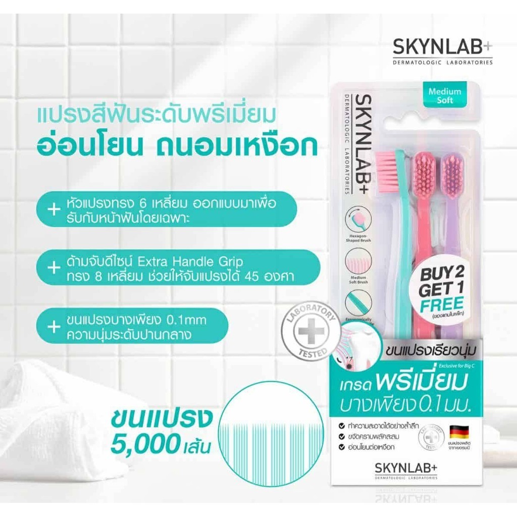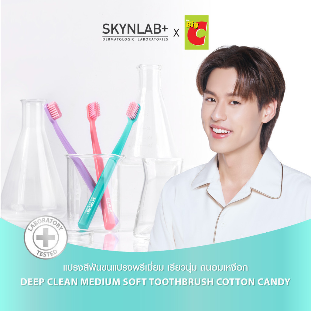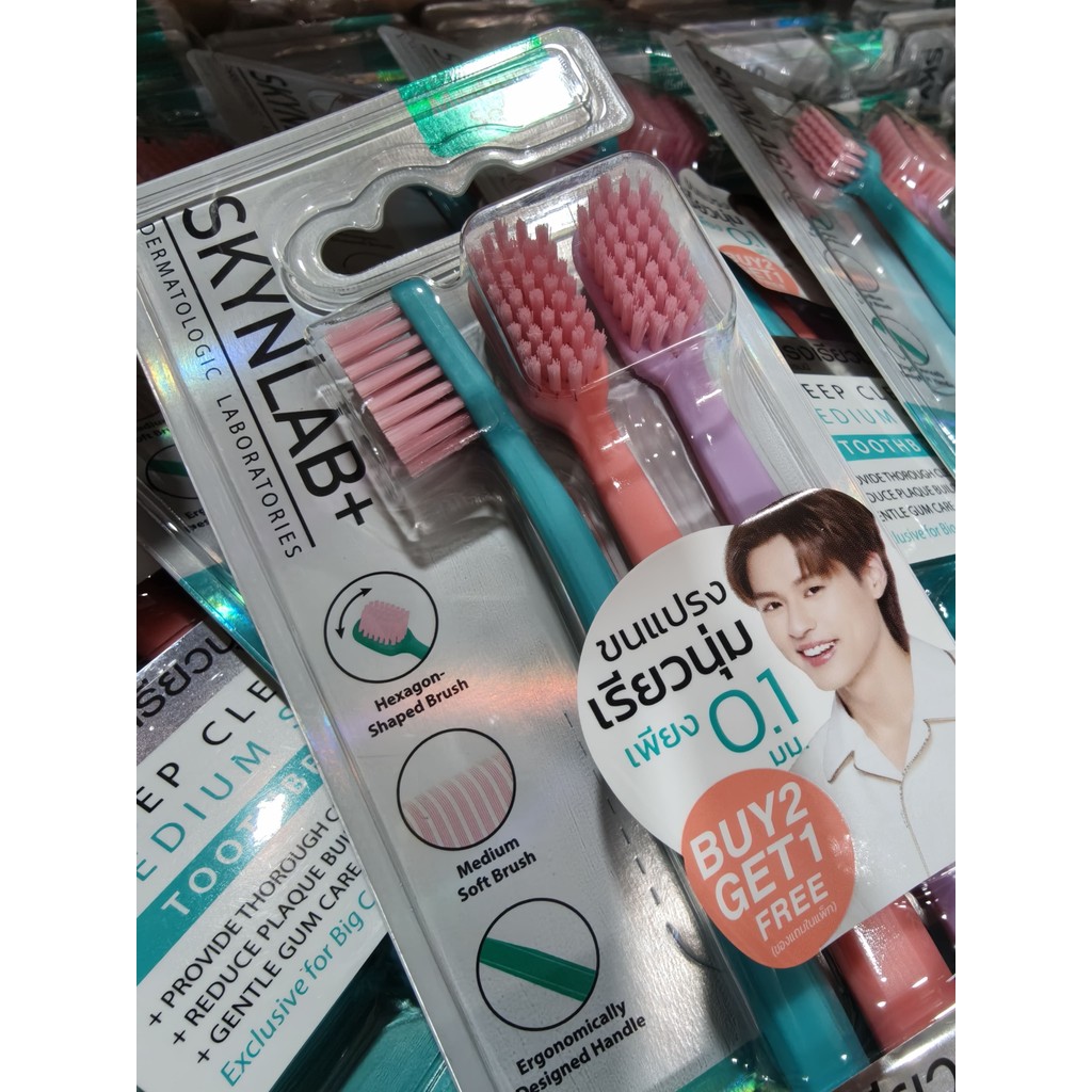 แปรงสีฟัน Skynlab {เซท/3ด้าม} Cotton Candy ดีพคลีนมีเดียมซอฟท์