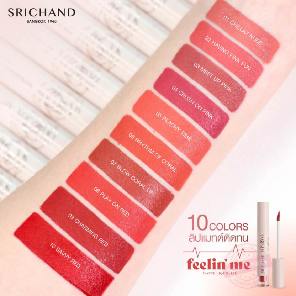 SRICHAND Feelin’ Me Matte Liquid Lip ศรีจันทร์ ลิปลิควิดเนื้อแมทต์ 10 สี | ลิปสติก ลิปแมท ลิปจุ่ม สีชัด ติดทน [3g]