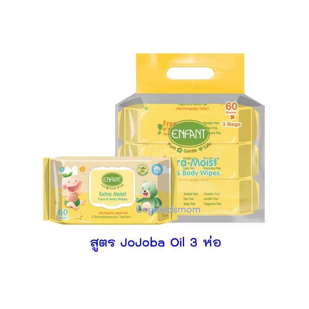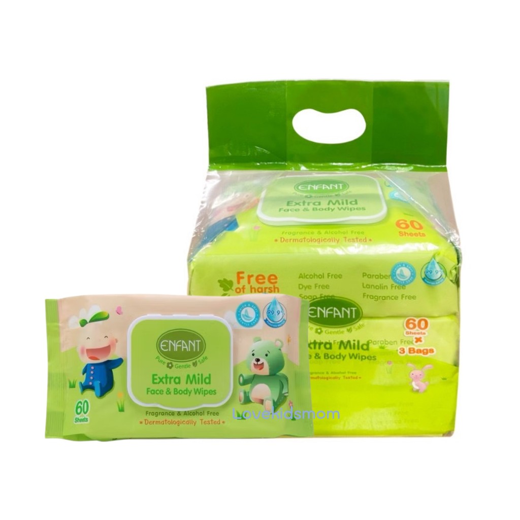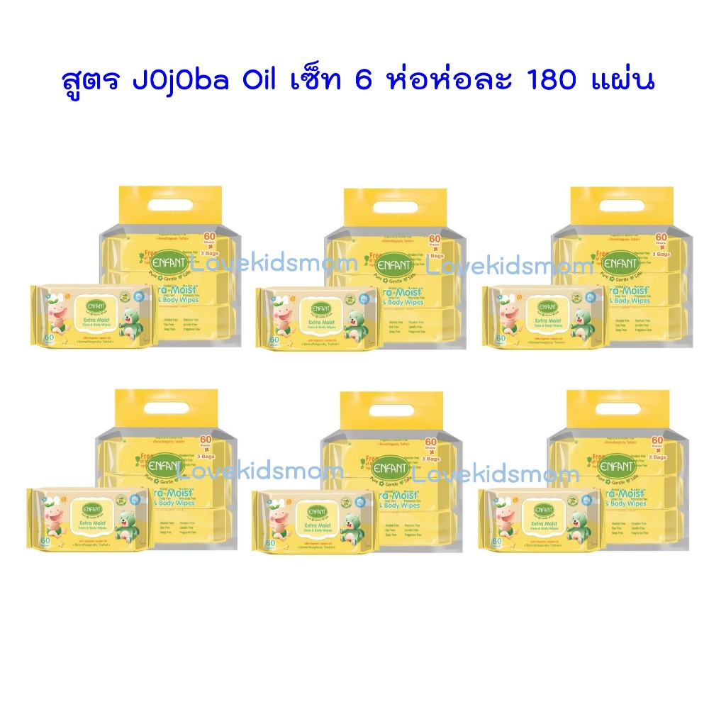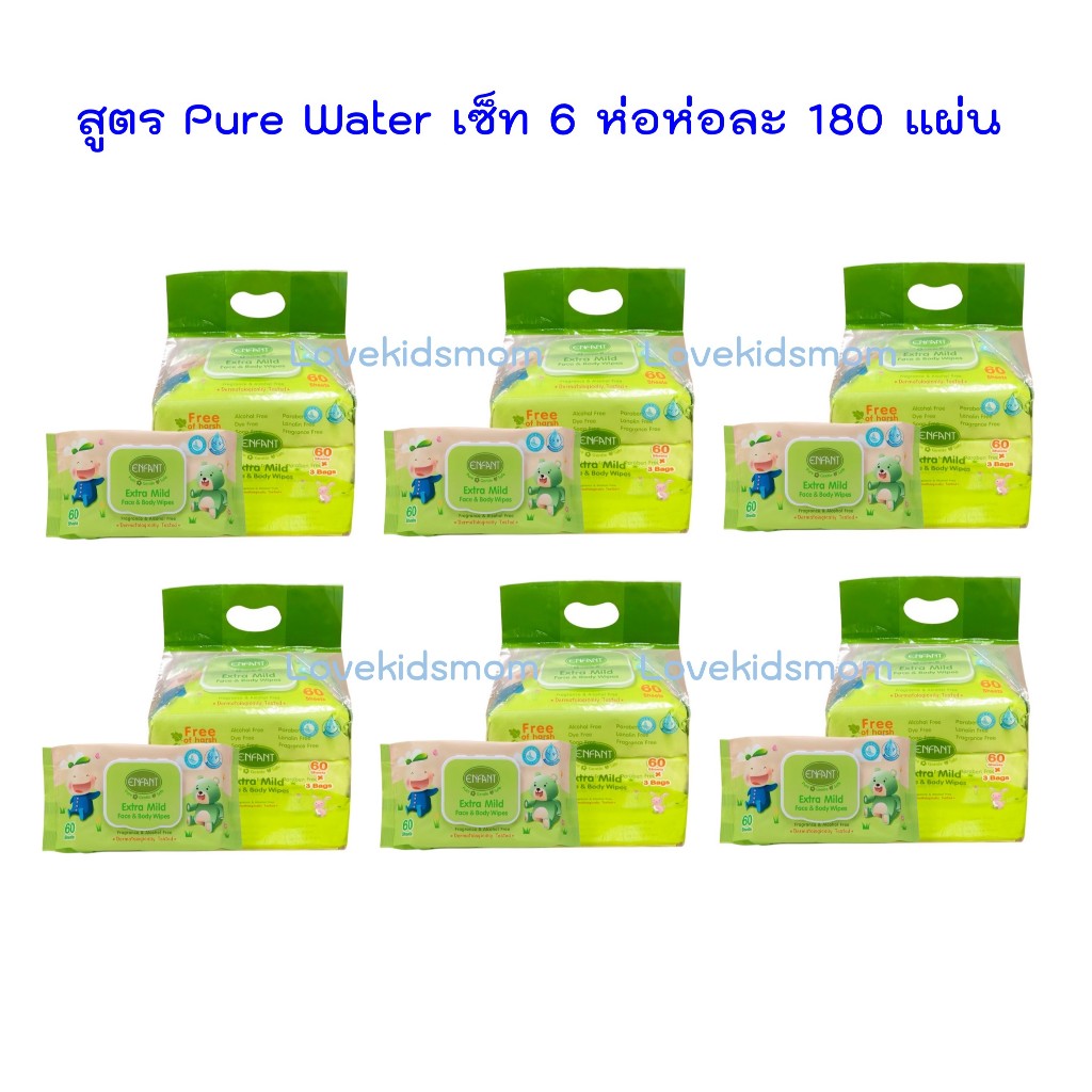 เซ็ท 6 ห่อ Enfant extra moist face & body wipes ทิชชูเปียกอองฟองต์ 160 แผ่น/180 แผ่น