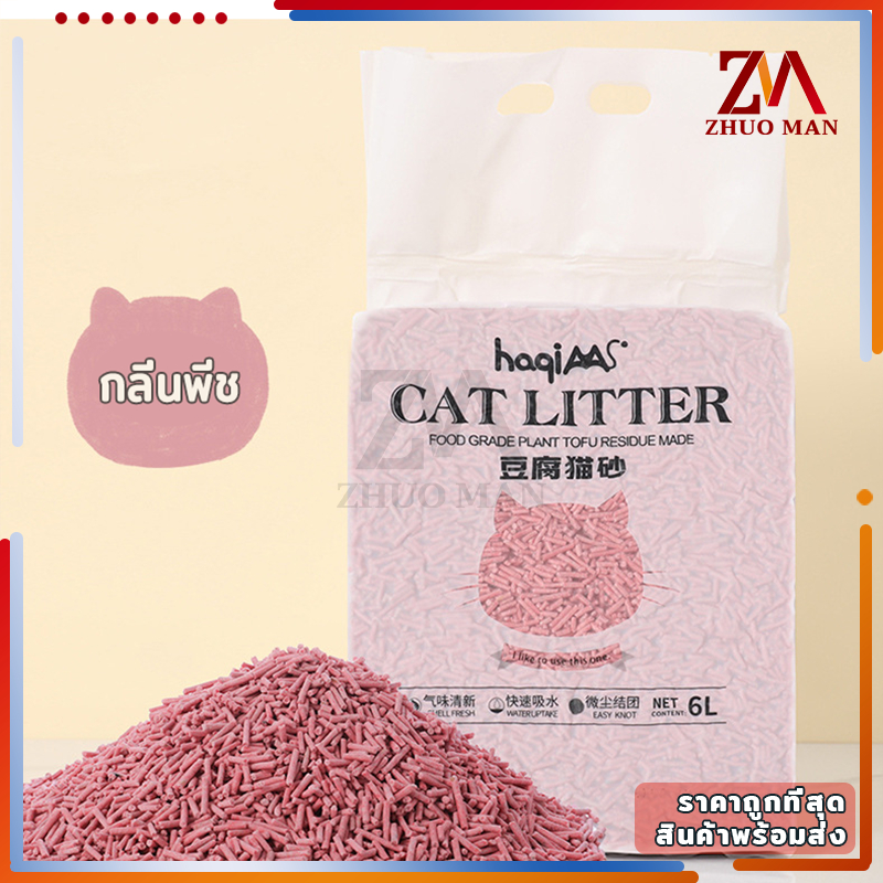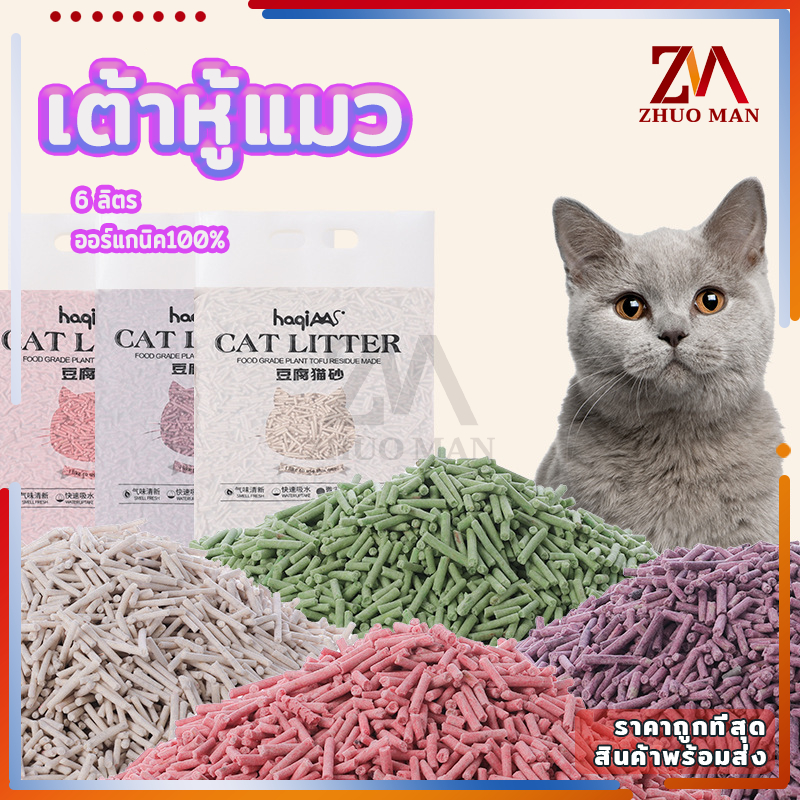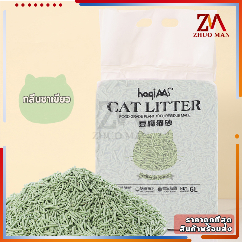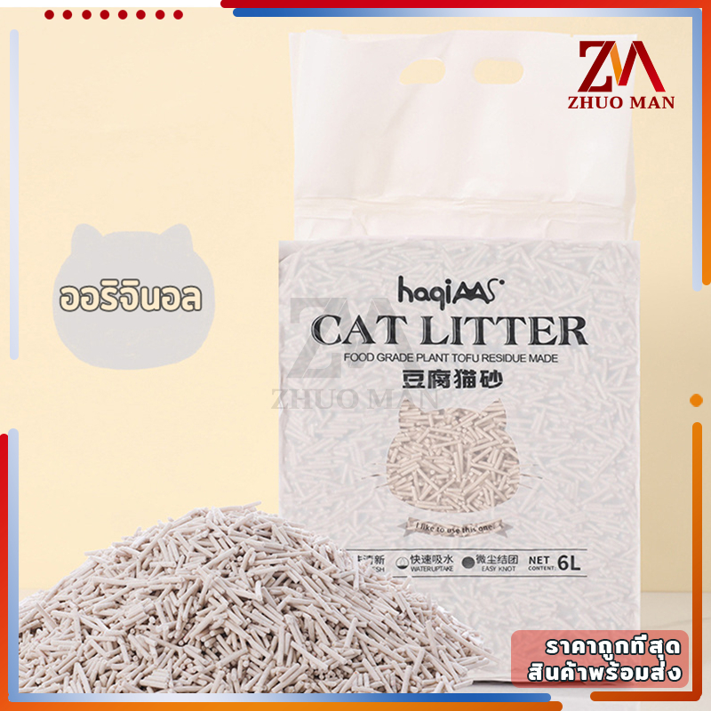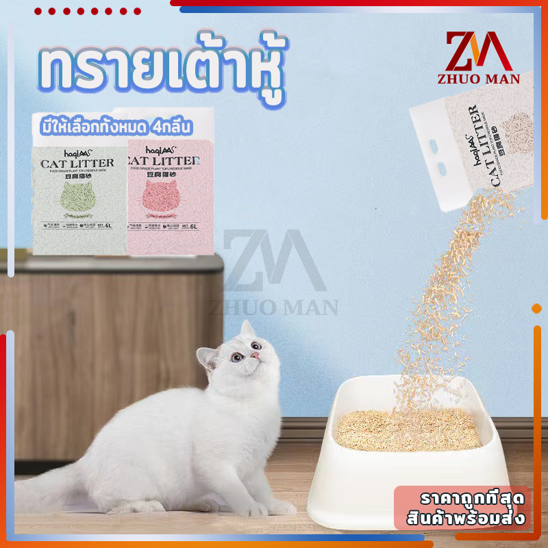 🔥แบบใหม่🔥ทรายแมวเต้าหู้ ทรายแมว 6 ลิตร ทรายเต้าหู้ ออร์แกนิค100% ผลิตจากกากถั่วเหลืองธรรมชาติ 4 กลิ่น ปลอดภัย