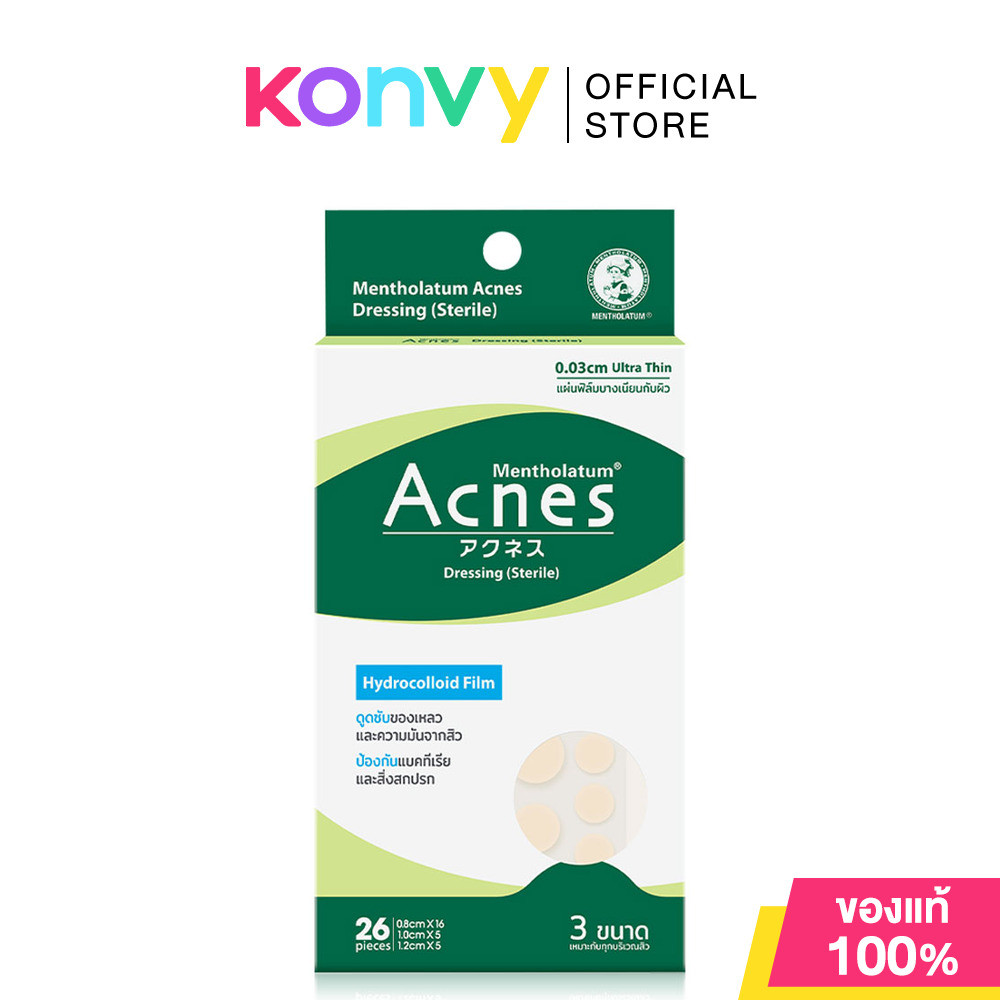 Mentholatum Acnes Dressing [Sterile] 26 Dots เมนโทลาทั่ม แผ่นปิดดูดซับสิว.