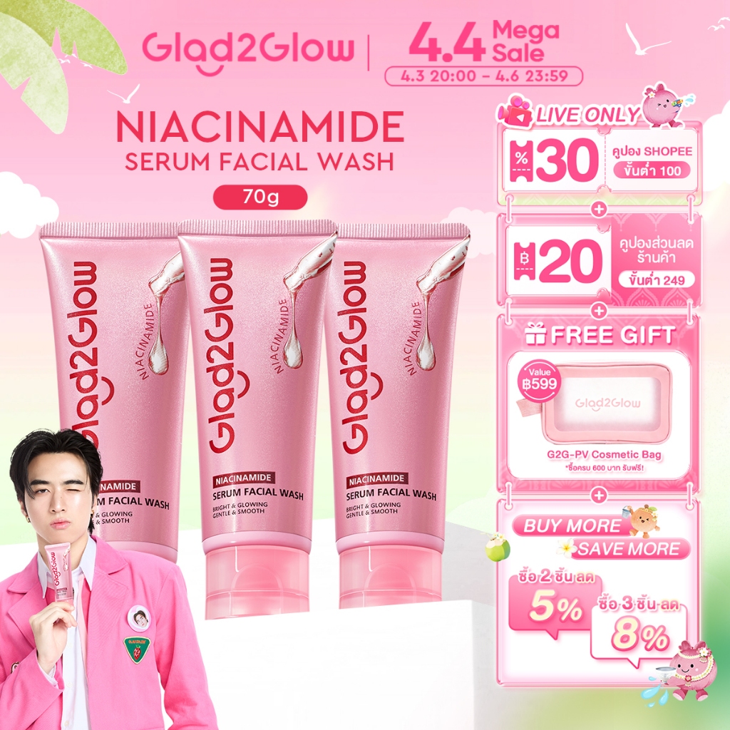 【NEW】Glad2Glow Niacinamide Serum Face Wash Cleanser ไบร์ทเทนนิ่ง คลีนเซอร์สำหรับใบหน้า โฟมล้างหน้า คลีนซิ่ง คลีนเซอร์