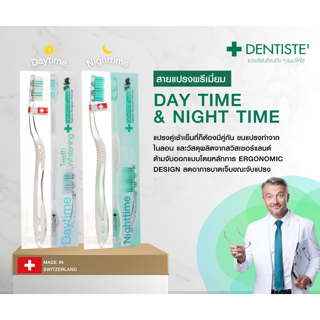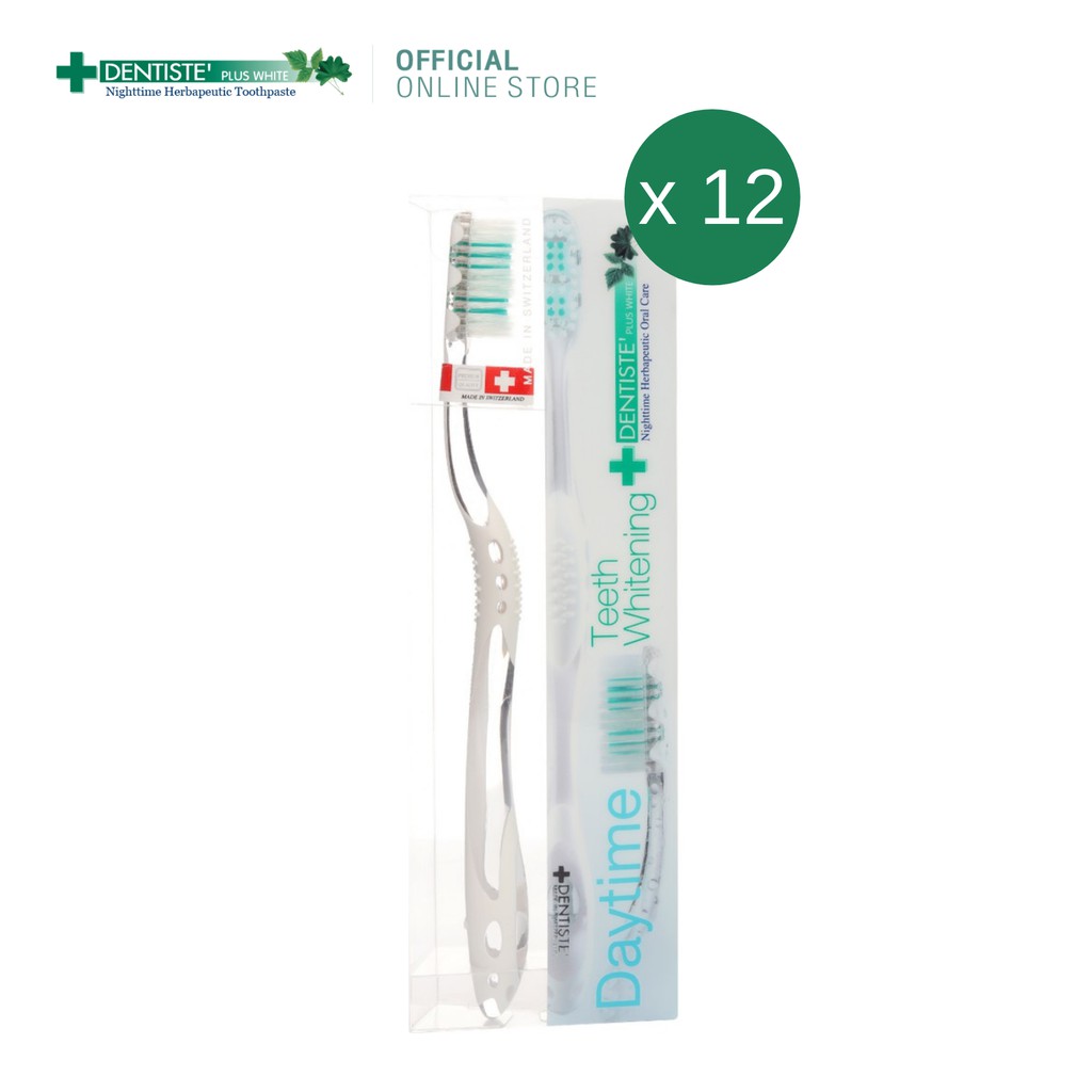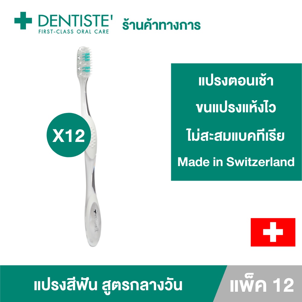 Dentiste' Day Time Toothbrush แปรงสีฟันสำหรับกลางวัน กำจัดคราบพลัค ทำความสะอาดลิ้น เดนทิสเต้ (แพ็ค 12)