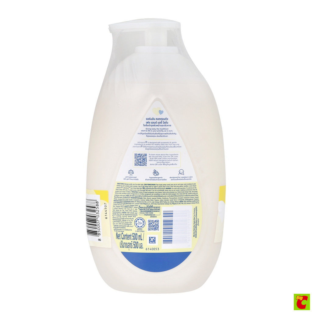 จอห์นสัน คอตตอน ทัช เฟซ แอนด์ บอดี้ โลชั่น 500 มล. x 2 ชิ้น