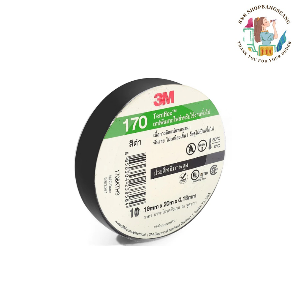 M Scotch เทป เทปพันสายไฟ #170 ขนาด 19mmx10m.x0.18mm สีดำ