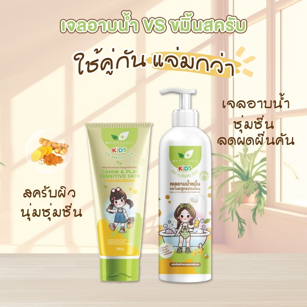 [ โปรโมชั่น ] My Organic Kids เจลอาบน้ำเด็ก เจลอาบน้ำ สครับขมิ้นและไพล ผด แพ้ ผื่น คัน รอยดำ รอยแดง พร้อมส่ง!!