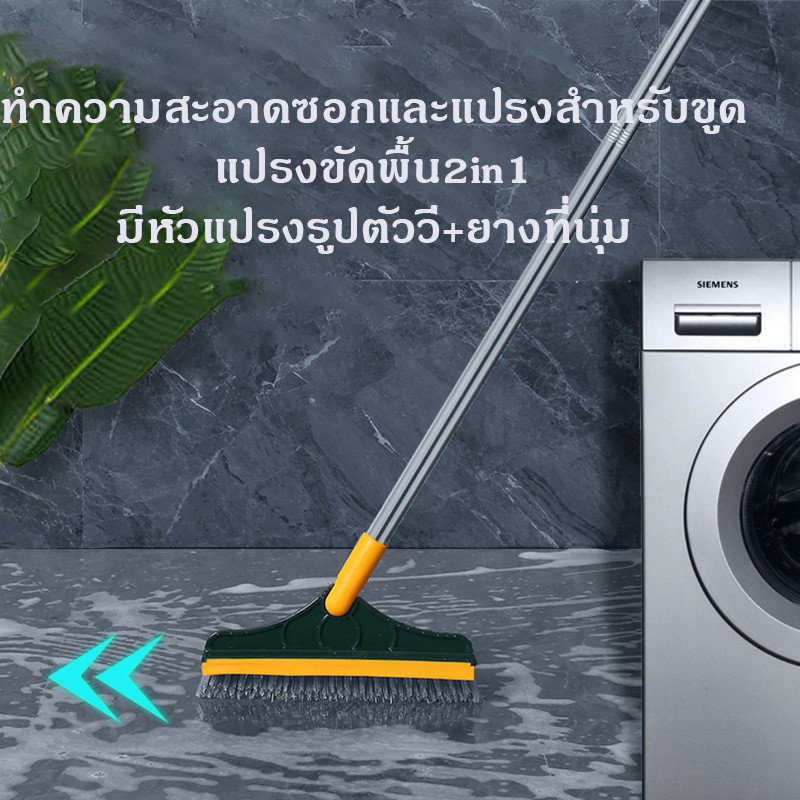 แปรงขัดพื้น แปรงถูพื้น แปรงขัดร่องยาแนว ขนแหลม ด้ามยาว ขัดห้องน้ำ ทำความสะอาด เข้าได้ทุกซอก ทุกมุม 3in1