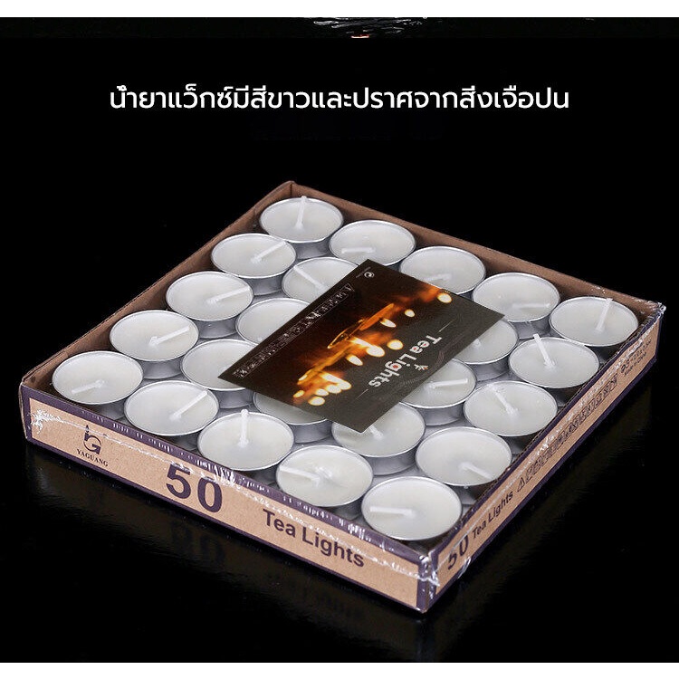 เทียนทีไลท์ Tealight ของแท้ เทียนถ้วย เทียนสปา แพ็ค 50 ก้อน ไร้กลิ่น ไร้ควัน เนื้อเทียนใสจุดหมดถ้วย ไม่มีกลิ่น ไร้ควัน