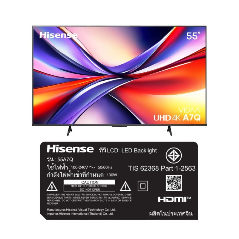 Hisense ทีวี A7Q สมาร์ททีวี 55 นิ้ว 4K VIDAA UHD LED รุ่น 55A7Q ปี 2025