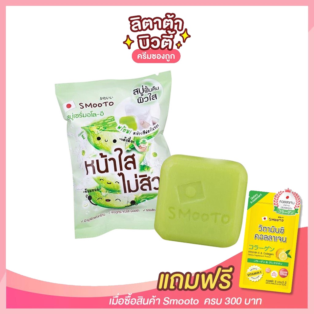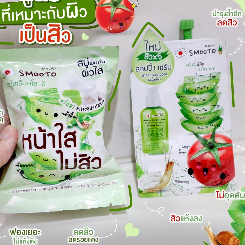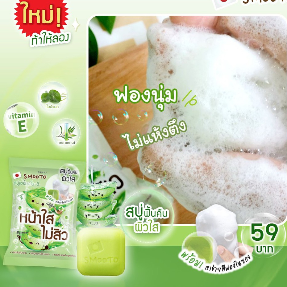 [ 1 ก้อน ] สมูทโตะ อโล-อี แอคเน่ ไวท์ เซรั่ม โซป Smooto Aloe-E Acne White Serum Soap 60 กรัม
