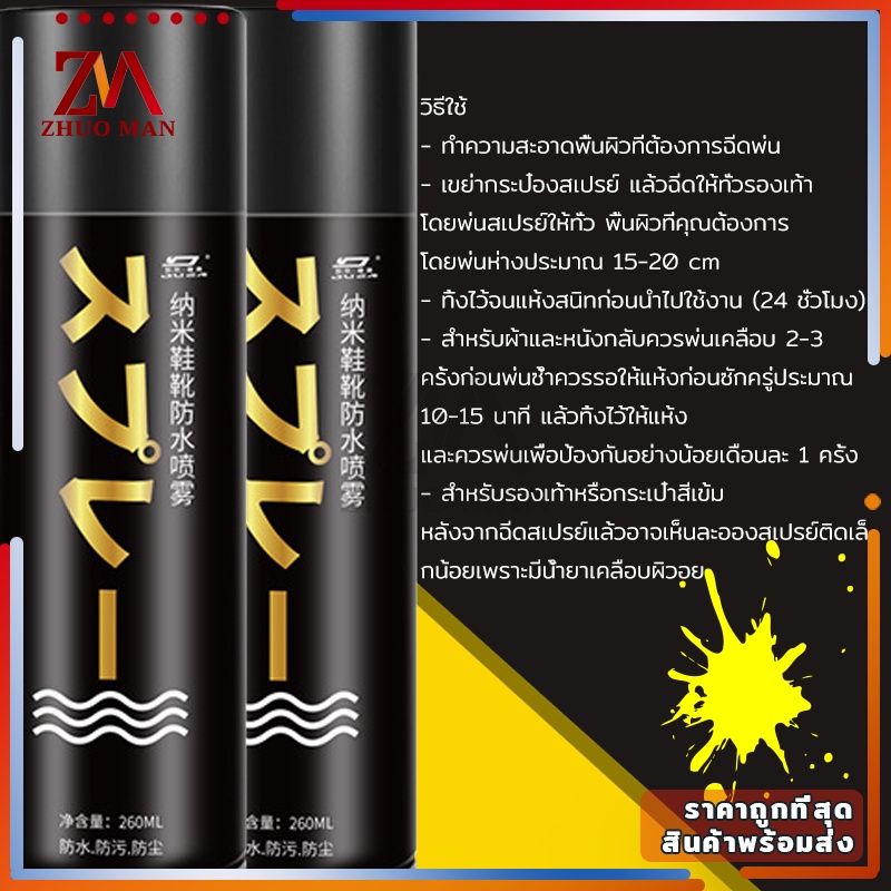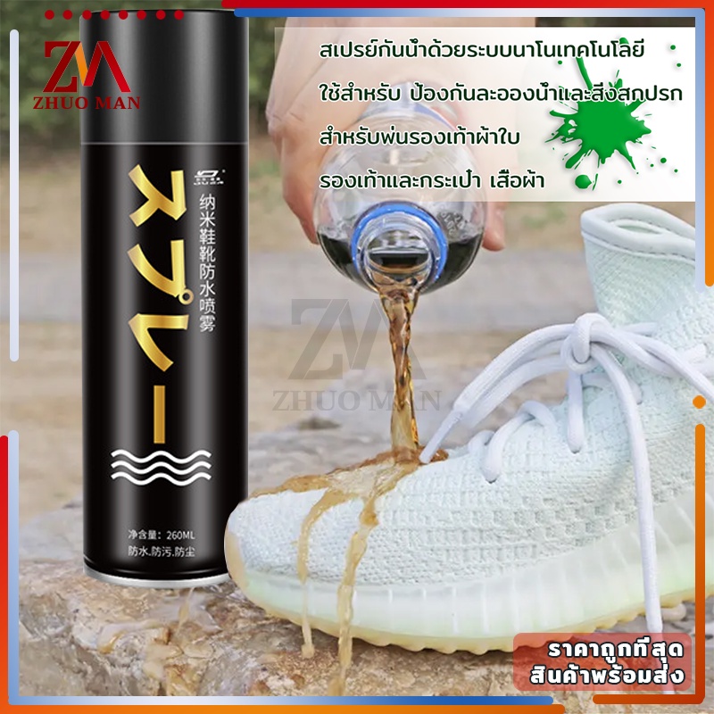 สเปรย์กันน้ำรองเท้า260MLสเปรย์นาโน ช้กันละอองน้ำและสิ่งส กปรก สามารถใช้กับผ้าหนังกลับ,ผ้าเต้นท์, กระดาษขึ้นรูป