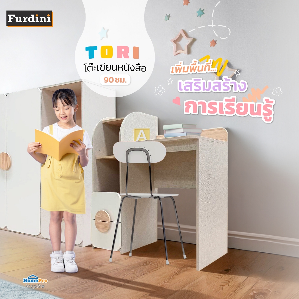FURDINI โต๊ะเขียนหนังสือ TORI 90 ซม. สี PINEOAK/ขาว/เทา จัดส่งโดย HomePro