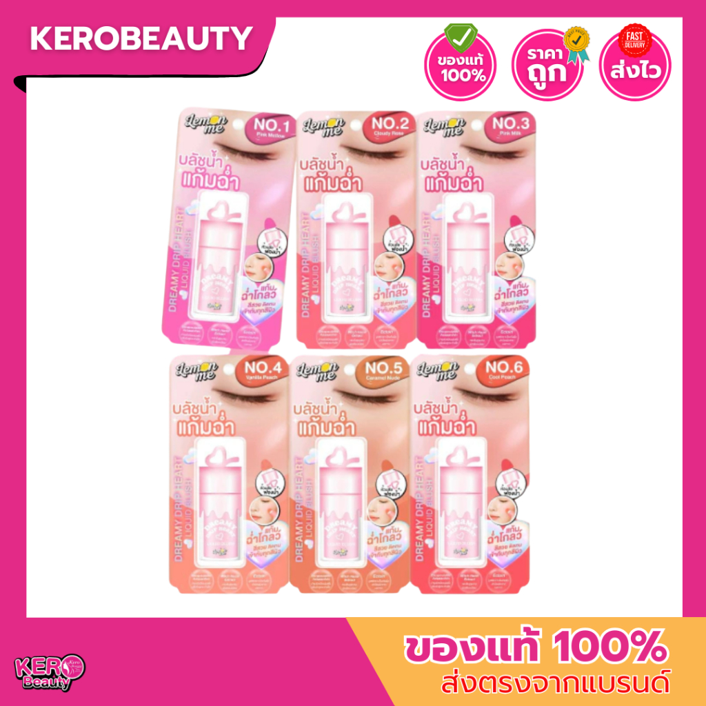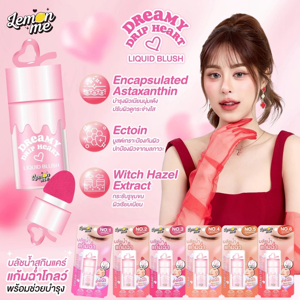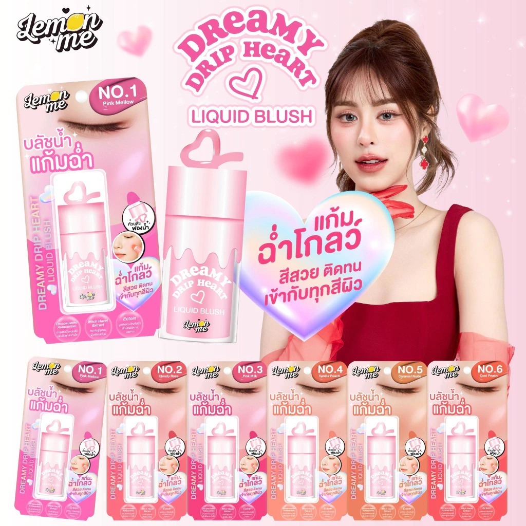 Lemon Me Dreamy Drip Heart Liquid Blush 7.8g บลัชเนื้อลิควิด พร้อมหัวฟองน้ำเนื้อนุ่ม เกลี่ยง่าย สีสวยสดชัด