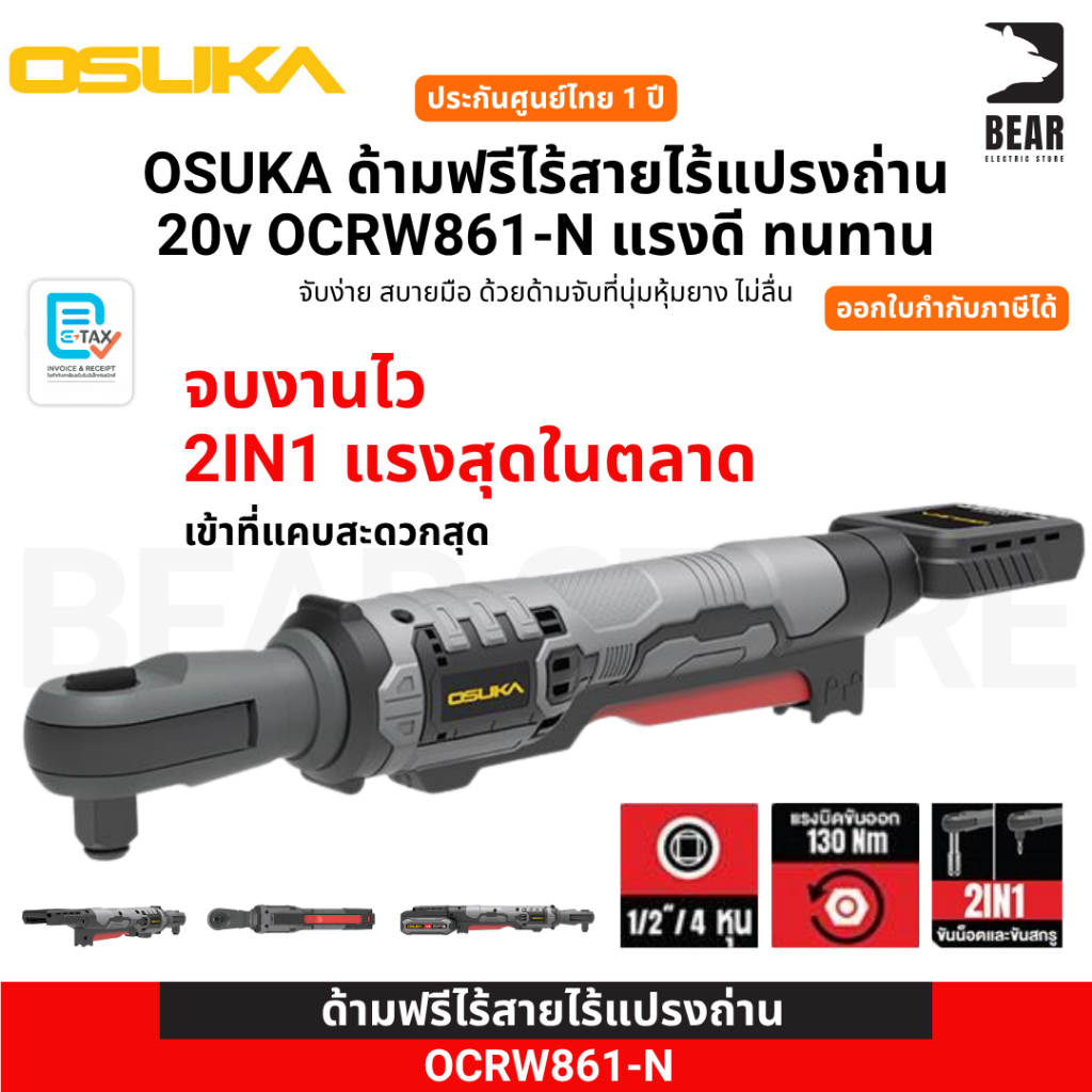 OSUKA ด้ามฟรีไร้สายไร้แปรงถ่าน 20v OCRW861-N แรงดี ทนทาน ประกันศูนย์ไทย 1 ปี