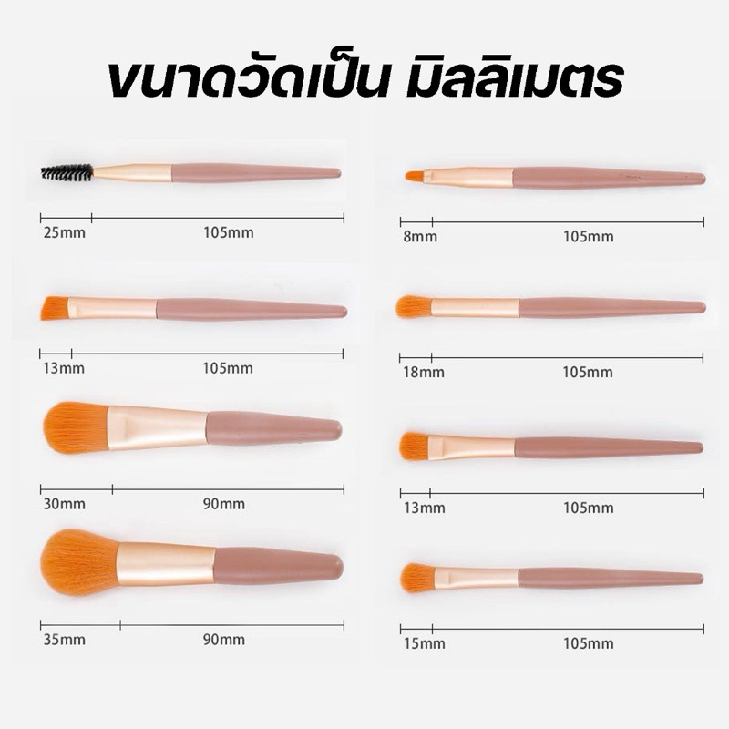 8pcs/ชุดละ แปรงแต่งหน้าชุด แปรงเครื่องสําอาง ชุดแปรงแต่งหน้า ขนแปรงนุ่มปลอดภัยไม่แพ้ G2832