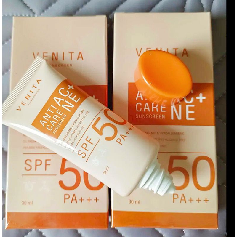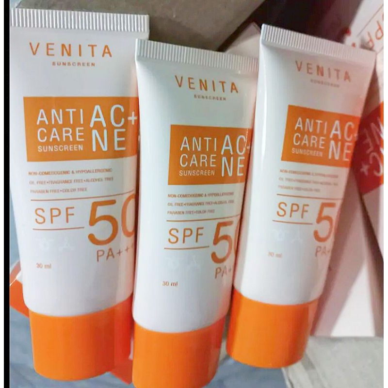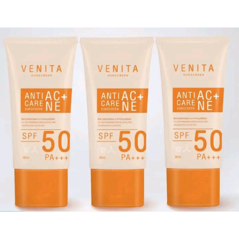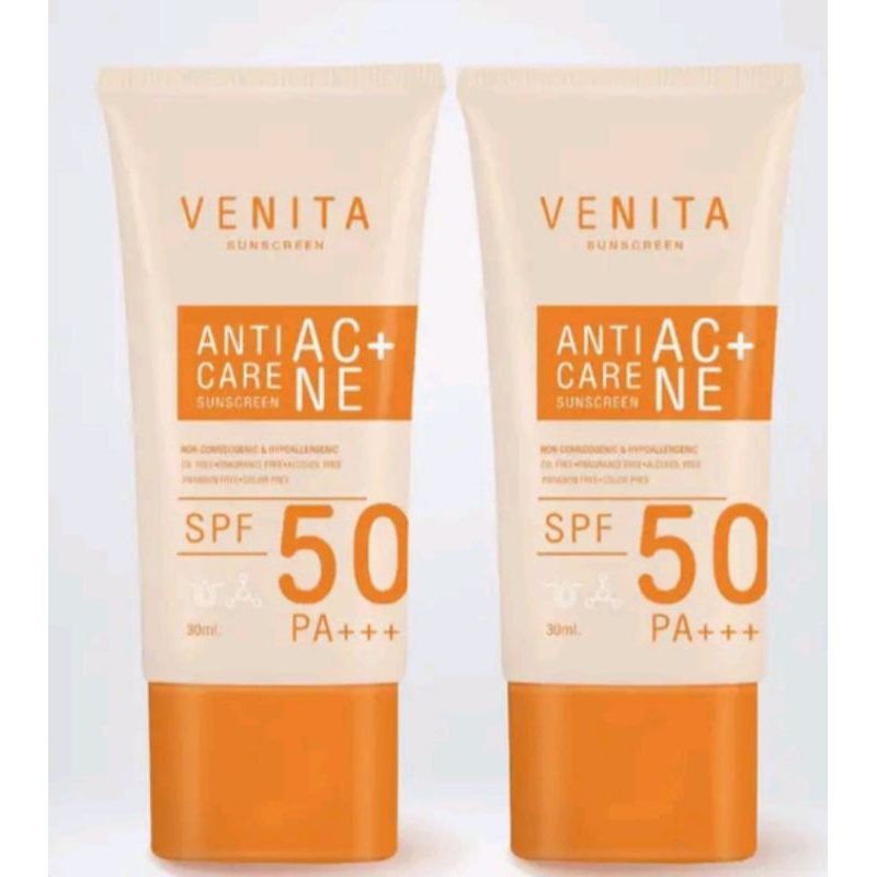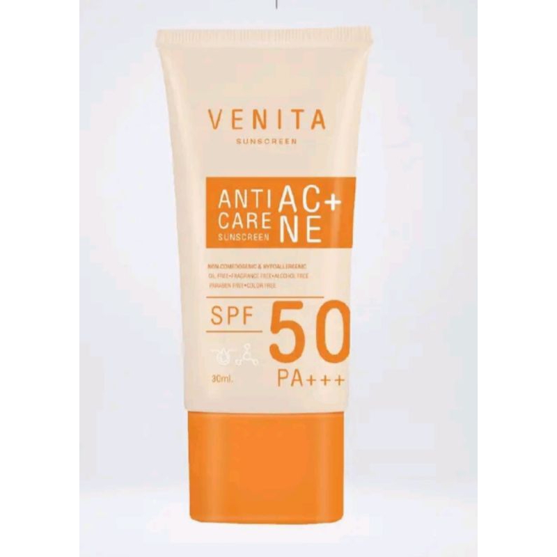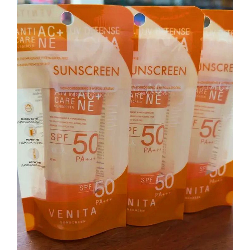 Venita Anti-Acne Care Sunscreen SPF50/PA+++ 30ml. ป้องกันรังสี UVA UVB, แสงแดด แสงไฟ แสงจากหน้าจอคอมมลภาวะฝุ่นควัน