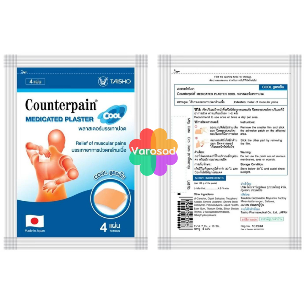 ☀️เคาน์เตอร์เพน Counterpain Medicated Plaster / Counterpain Plaster แผ่นปิดแก้ปวด พลาสเตอร์บรรเทาปวด กอเอี๊ยะ