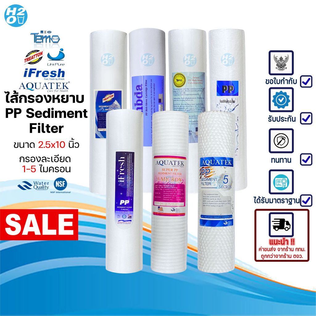 ไส้กรองหยาบ PP sediment ขนาด 2.5x10 นิ้ว 1,5,10 ไมครอน มีหลากหลายยี่ห้อ iFresh Unipure Tema AQUATEK