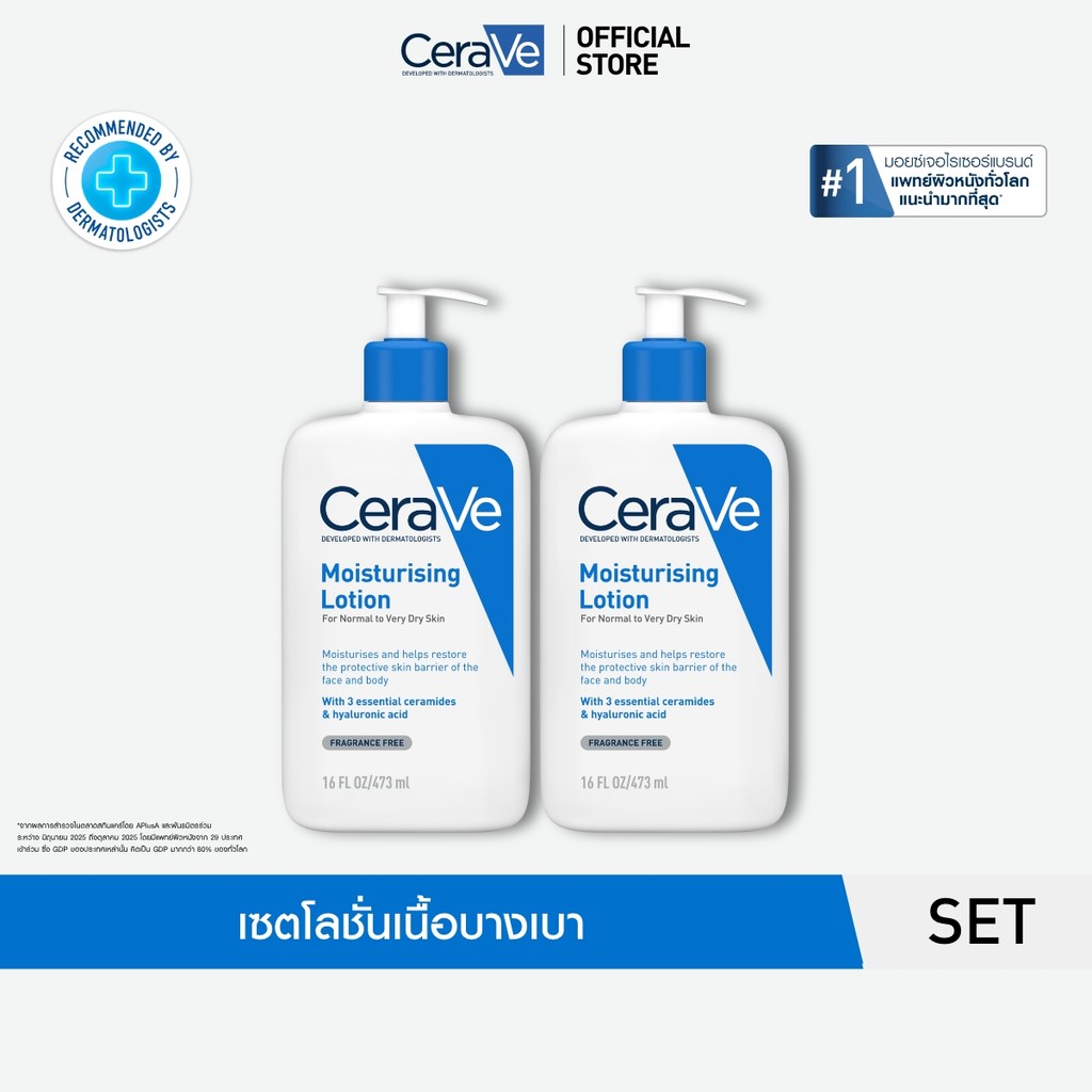 [เซตสุดคุ้ม] เซราวี CERAVE Moisturising Lotion โลชั่นบำรุงผิว ชุ่มชื้น เนื้อสัมผัสบางเบา 473ml x2 ชิ้น