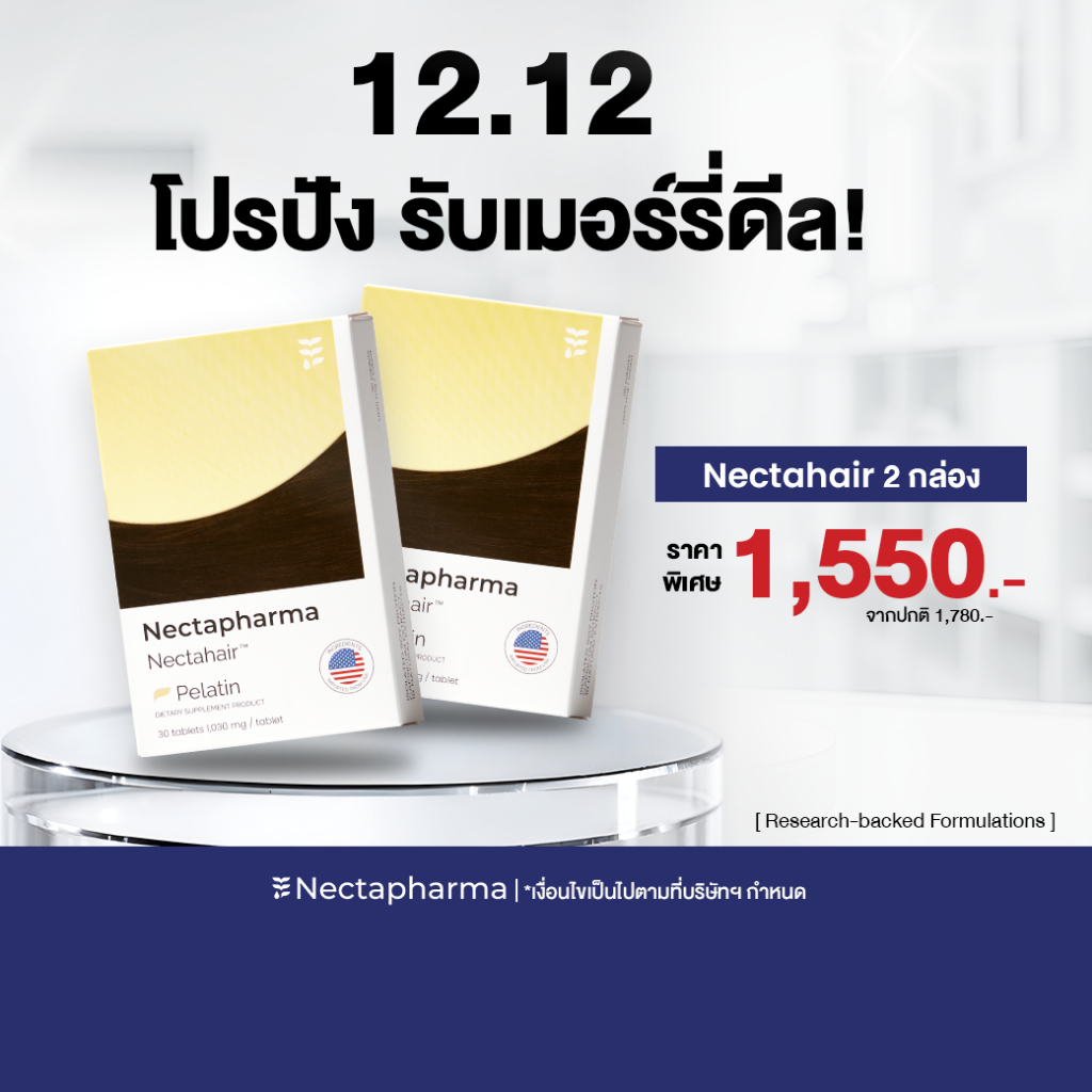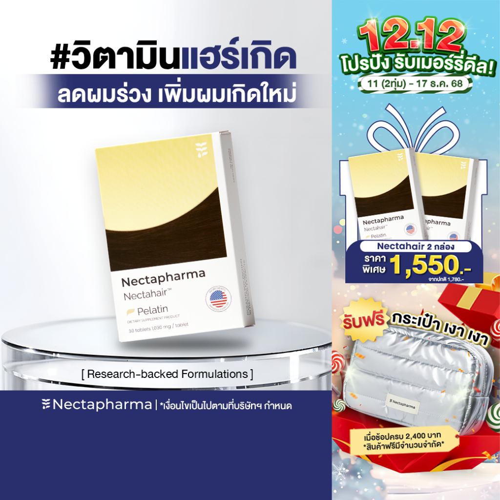 Nectahair วิตามินจบปัญหาร่วง บาง ล้าน Pelatin จาก Nectapharma วิตามินบำรุงผม อาหารเสริมผม ผมร่วง ผมบาง ผมขึ้น biotin