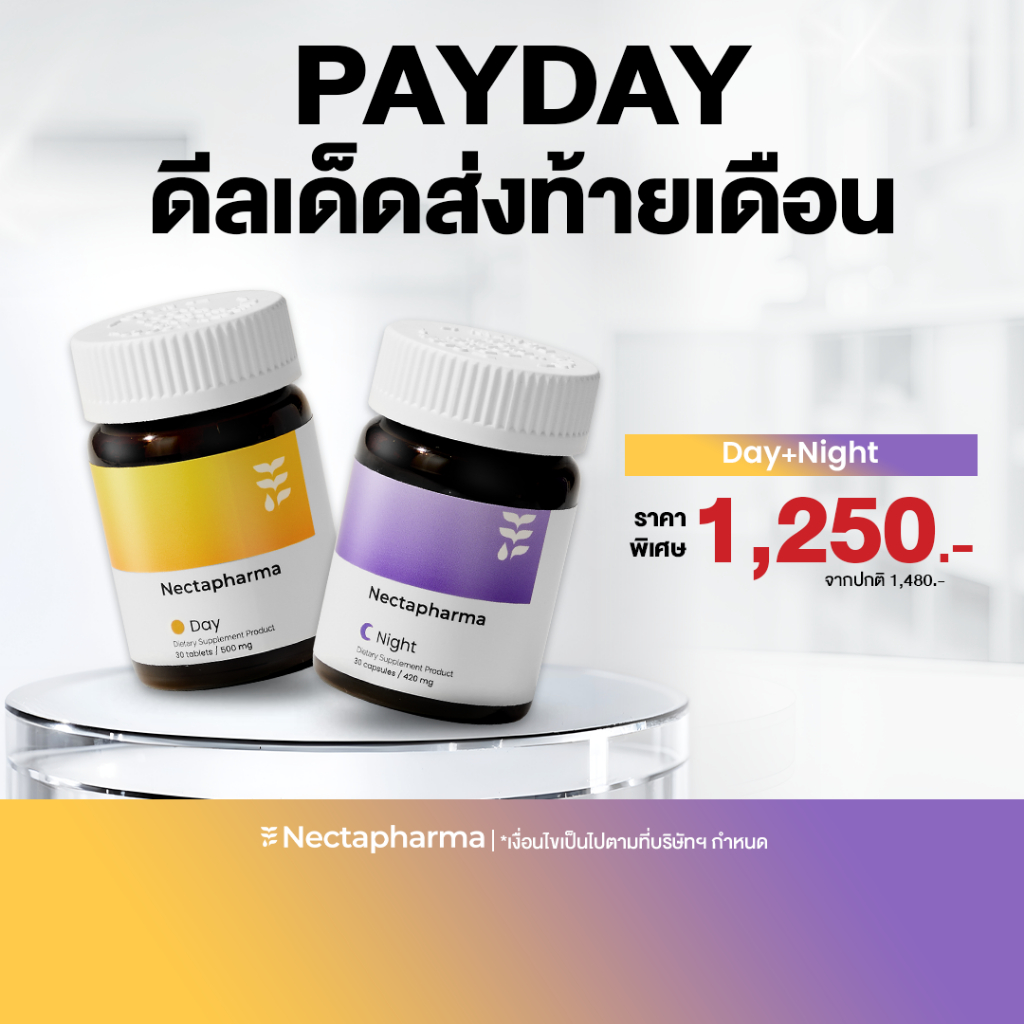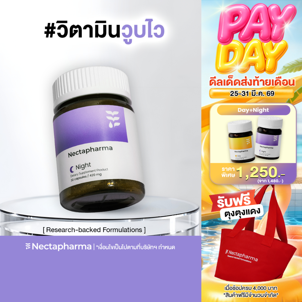 Nectapharma Night วิตามินช่วยเรื่องนอน อาหารเสริมประกอบด้วย Pharmagaba Tart Cherry L-Theanine แล ะ L-Glutamine