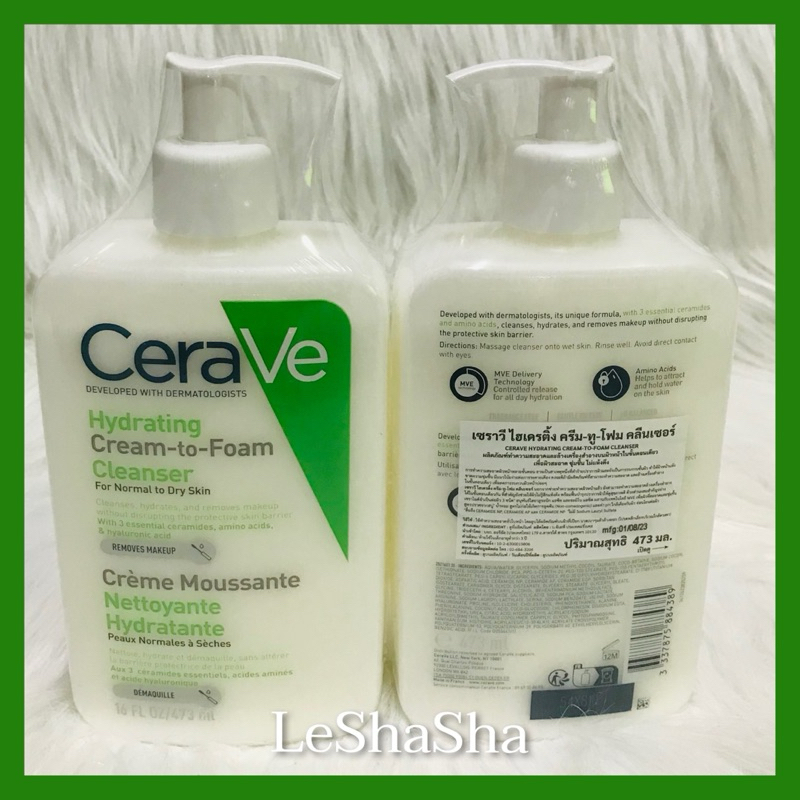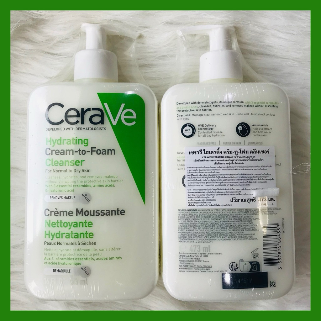 🔥ลด30%ในวีดีโอ‼️ผลิตฝรั่งเศส แท้100% ฉลากไทย🔥เซราวี เช็ดเครื่องสำอาง โฟมล้างหน้า CERAVE HYDRATING CREAM-TO-FOAM CLEANSER
